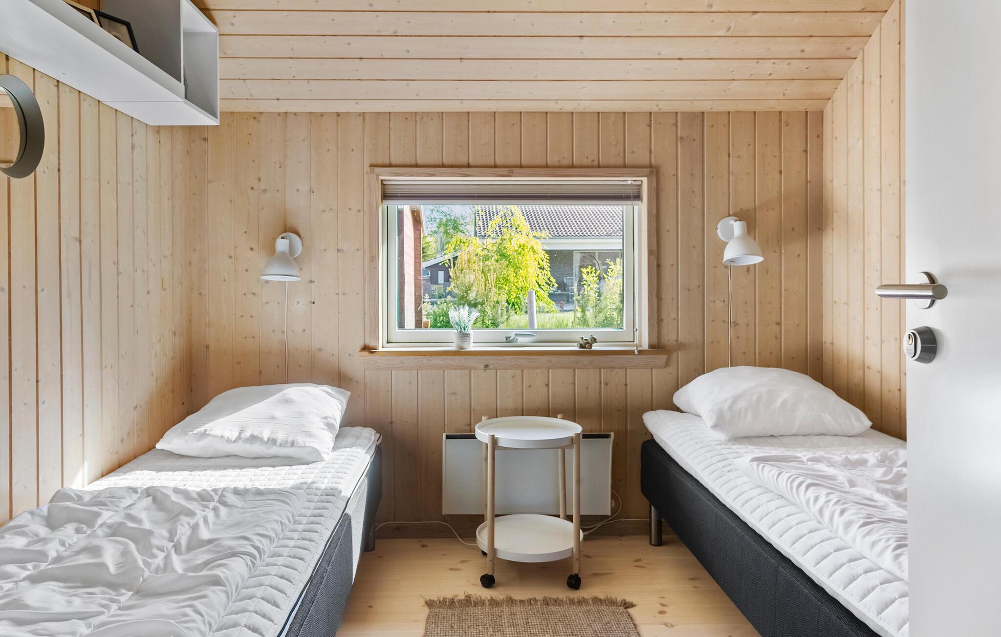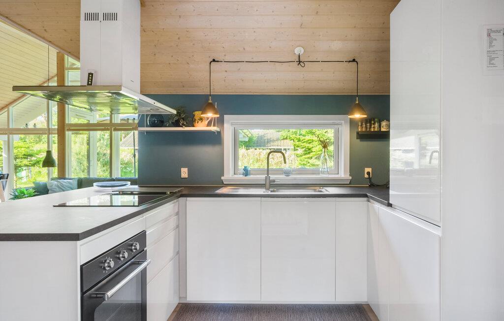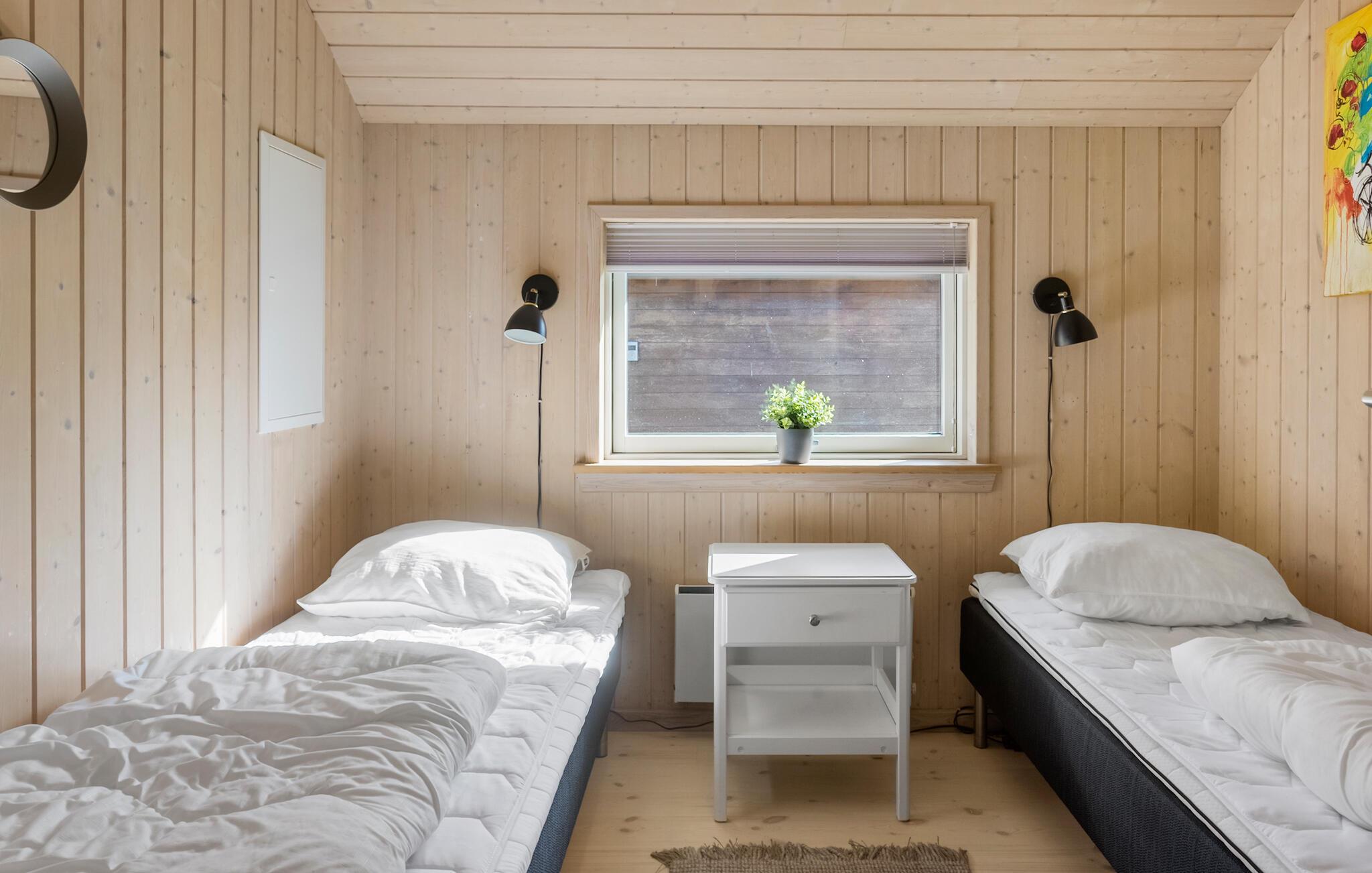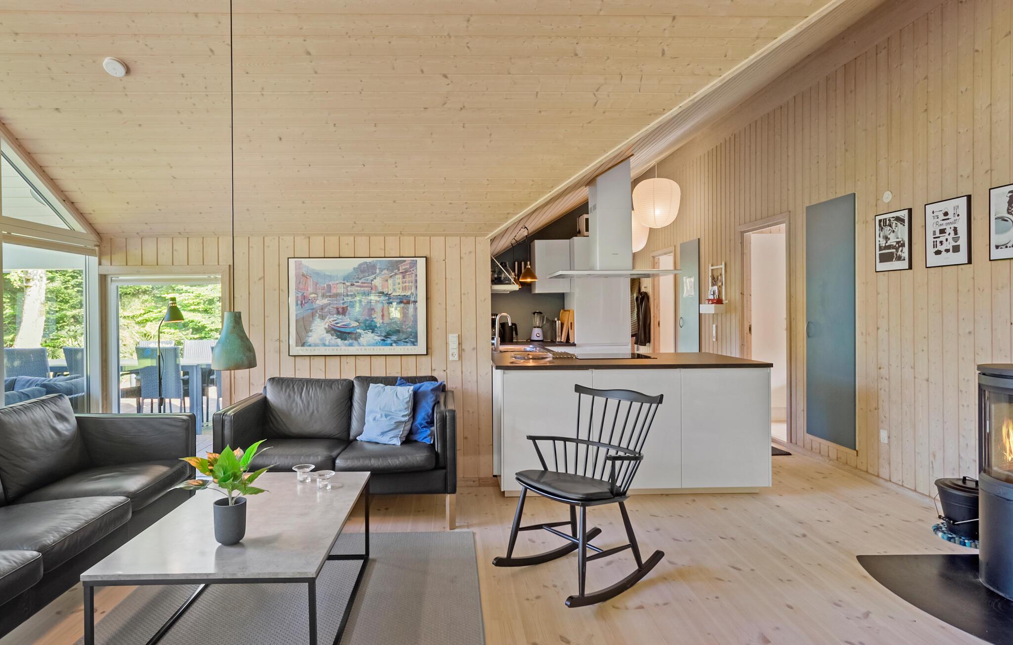 Velkommen til dette veludstyrede feriehus, hvor der venter jer en hyggelig atmosfære og mange faciliteter for både store og små. I finder flere hyggelige sovepladser i soveværelserne og på hemsen. Huset egner sig med sine to flotte badeværelser godt til et ophold for to familier, der ønsker at tilbringe ferien sammen. Den rummelige stue ligger i åben forbindelse med køkkenet og spisestuen, hvorfra I har en fin udsigt til haven. I aktivitetsrummet er der lagt op til mange timers sjov ved poolbordet eller et spil dart.
