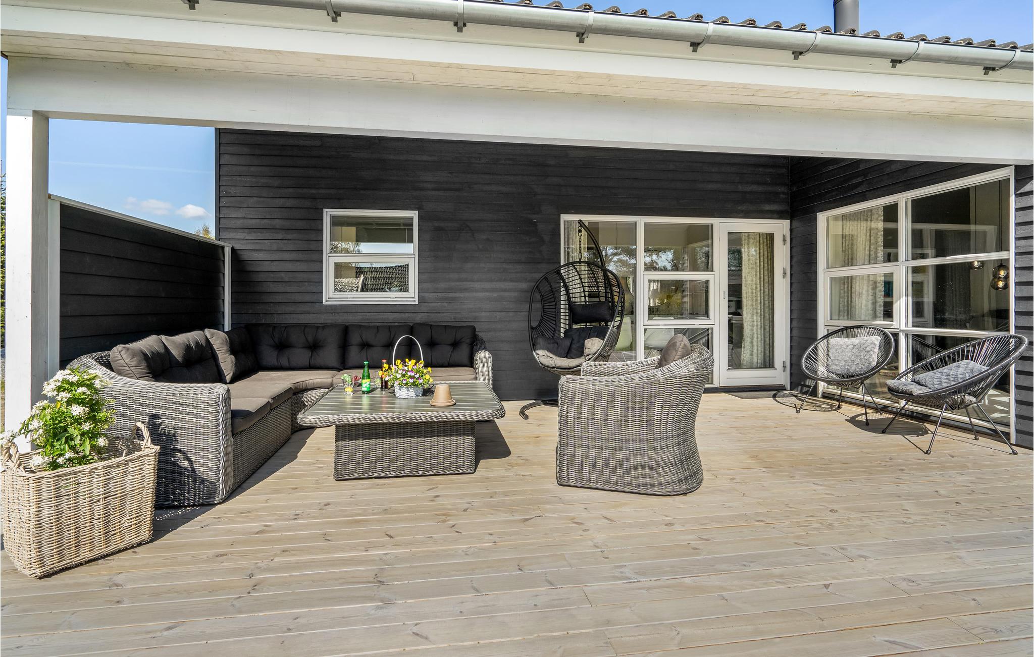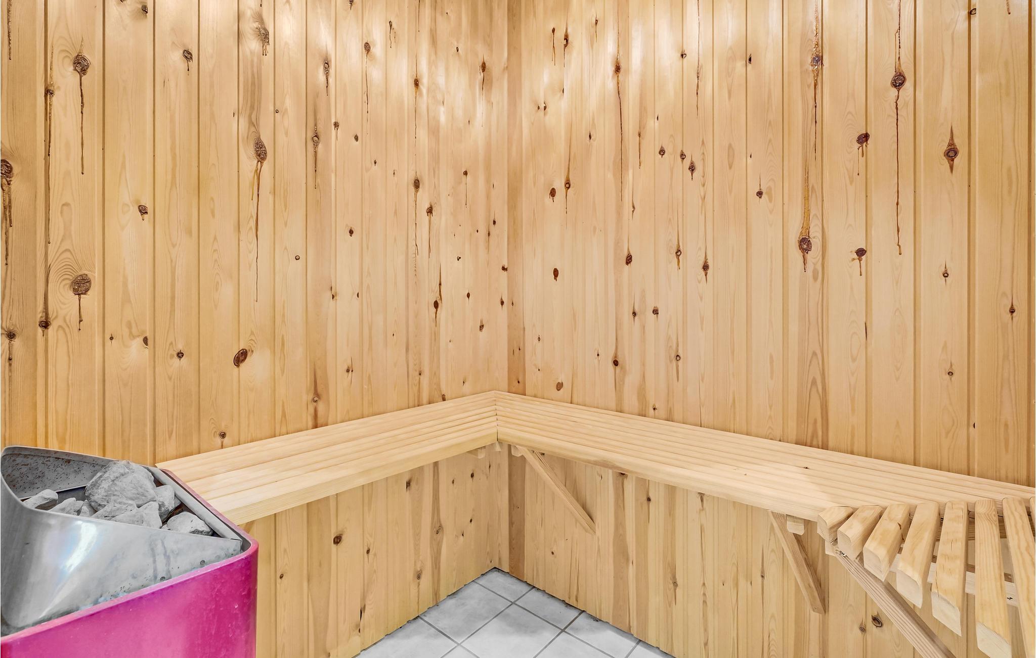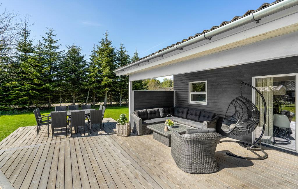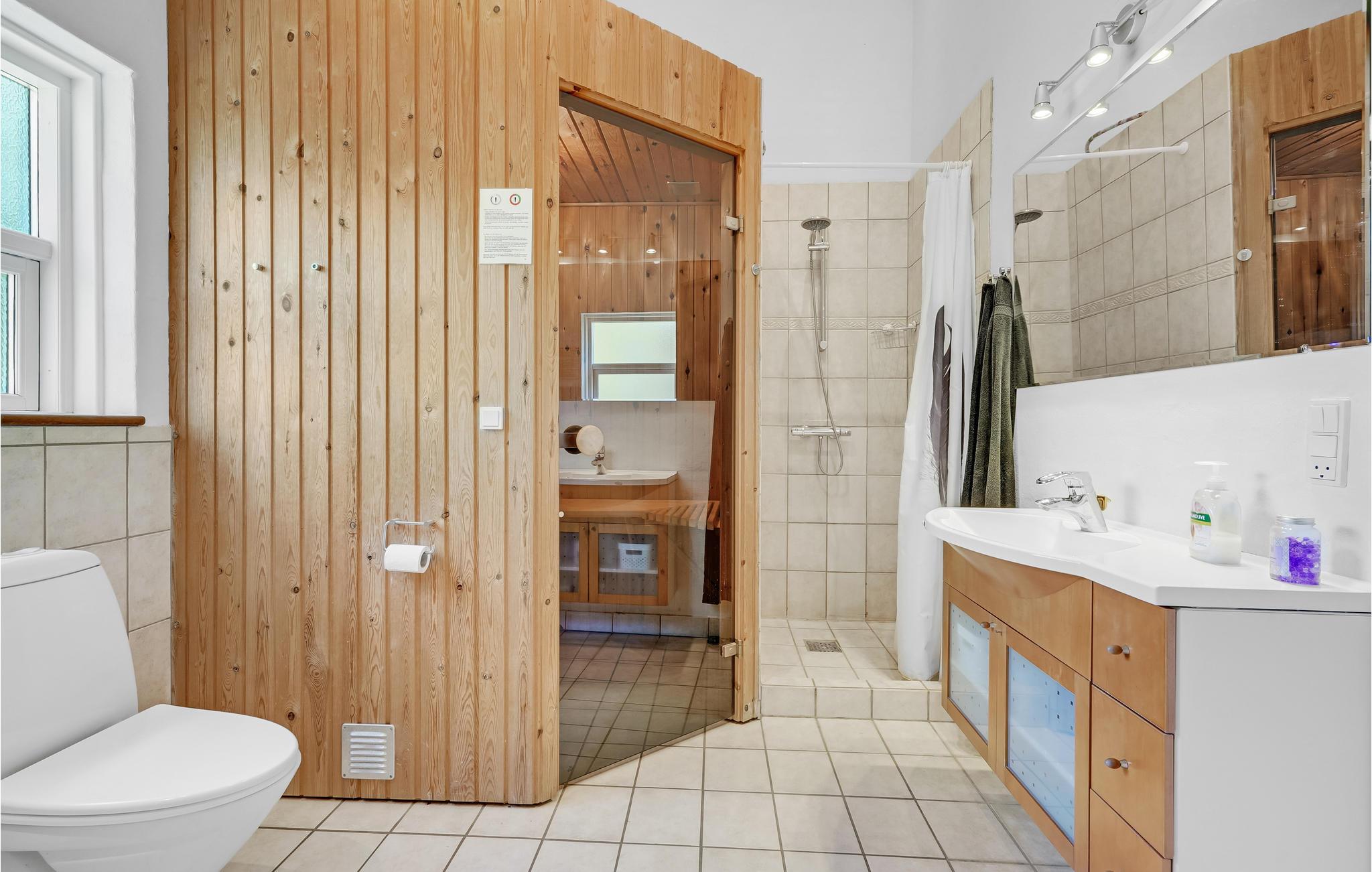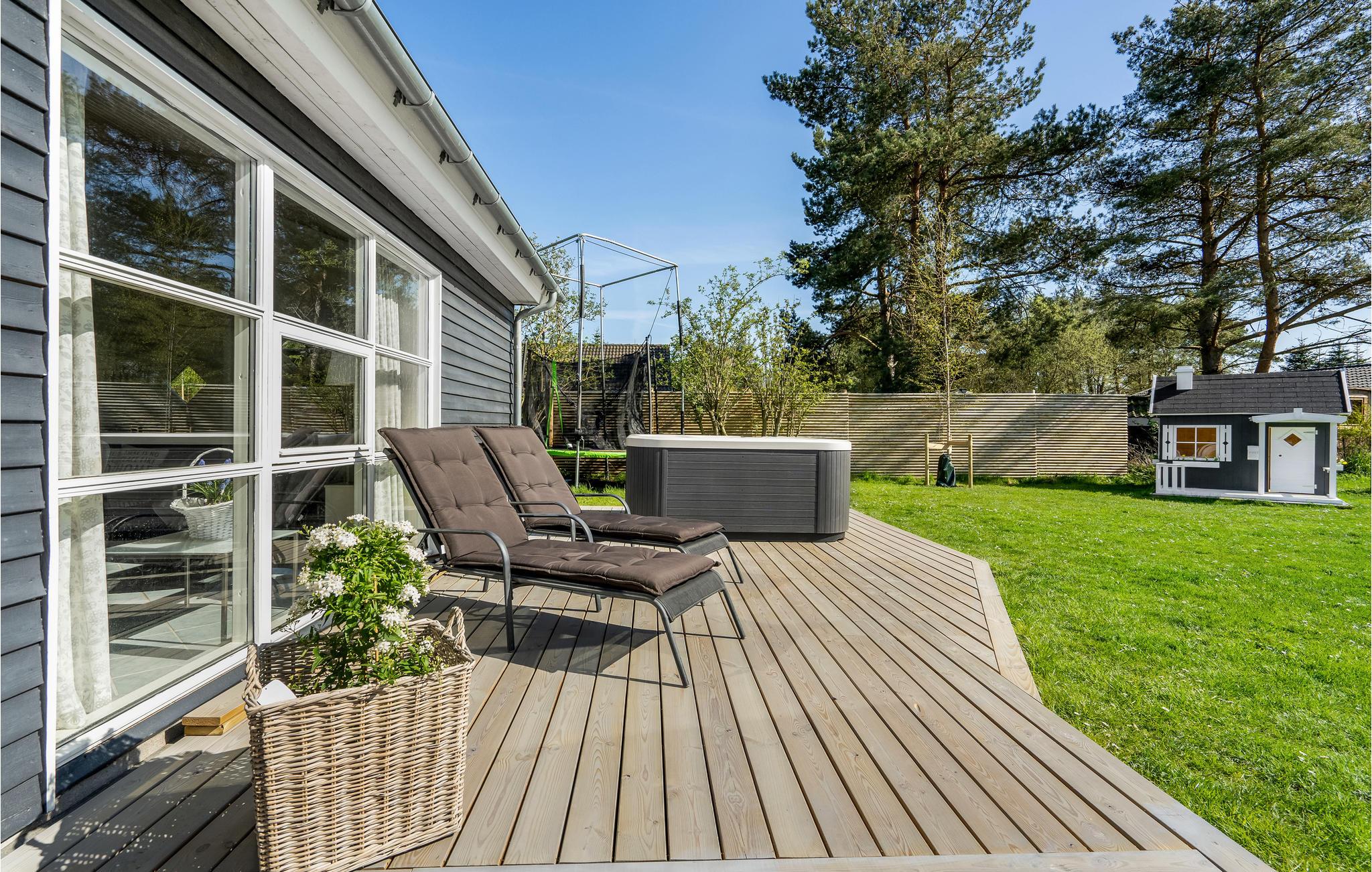 Sommerhuset indeholder fire gode soveværelser samt to badeværelser, hvoraf det ene er med adgang til whirlpool og sauna. Rummelig stue med pæn møblering og brændeovn til den kolde årstid, og hvor børnene kan muntre sig med at spille PS3. Huset omkranses af flere skønne terrasser, både åbne og overdækkede, der inviterer til solbadning, afslapning og grillhygge eller en tur i den udendørs spa på lange sommeraftener.