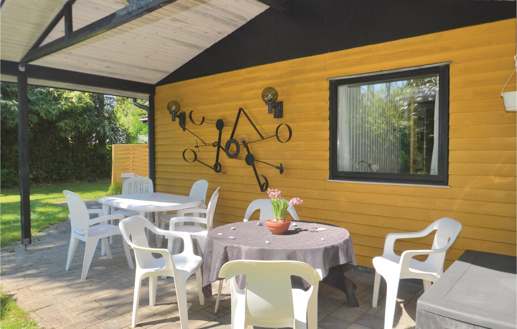 Charmerende træhus tæt på Marielyst Strand med moderne faciliteter og delvis overdækket terrasse.