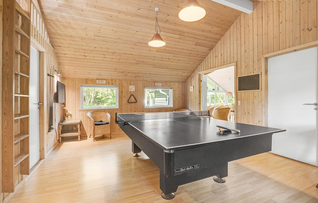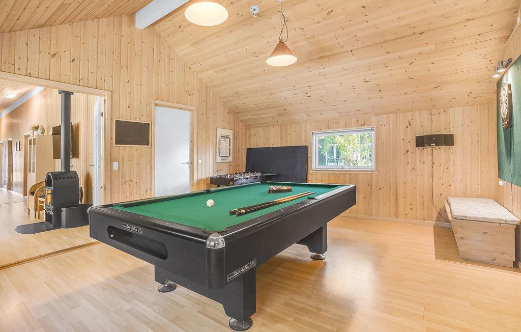 I kan se frem til et rummeligt hus med hele fem værelser med hems og 14 sengepladser. Derudover er der et stort aktivitetsrum med DVD/TV, bordfodbold, bordtennis og billard/pool samt dart. Desuden to badeværelser, herunder et stort med en firepersoners spa og sauna. Dertil et stort, velassorteret køkken og en stor, hyggelig stue med stort TV med Chromecast og komfortable møbler samt en god brændeovn. Haven har legestativ samt sandkasse til de små samt bålplads og spil til de unge. Husk briketter til brændeovn og bålplads.