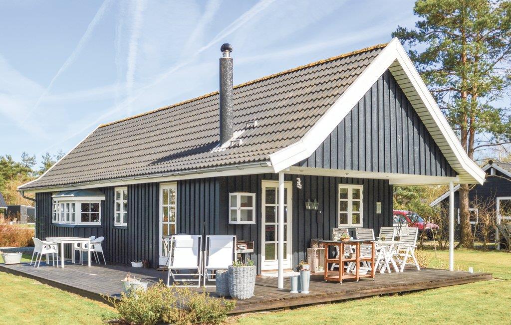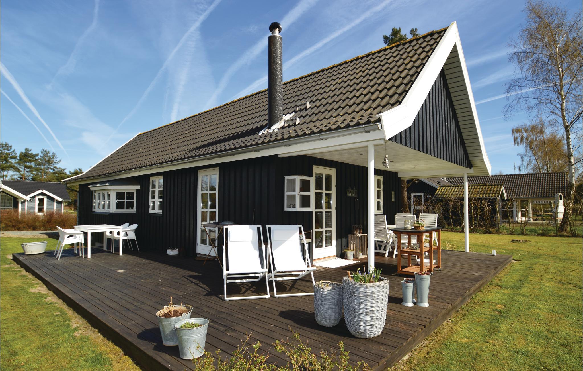 Hyggeligt træhus nær børnevenlig strand i Marielyst med spabad, internet og brændeovn.
