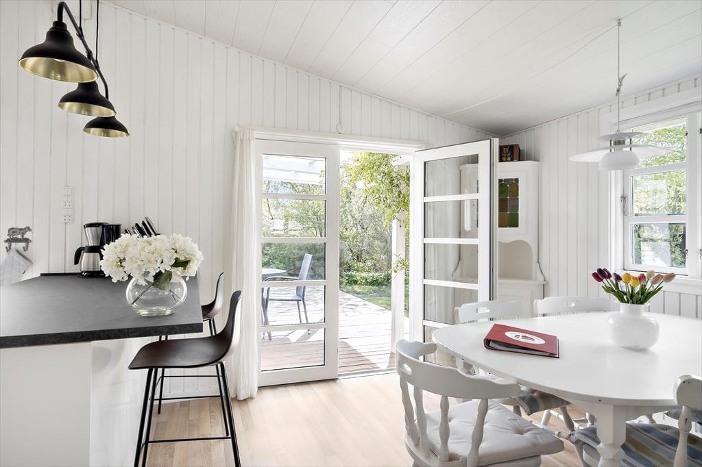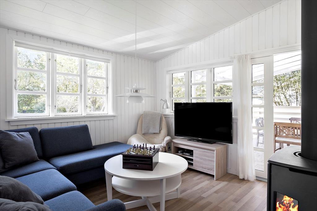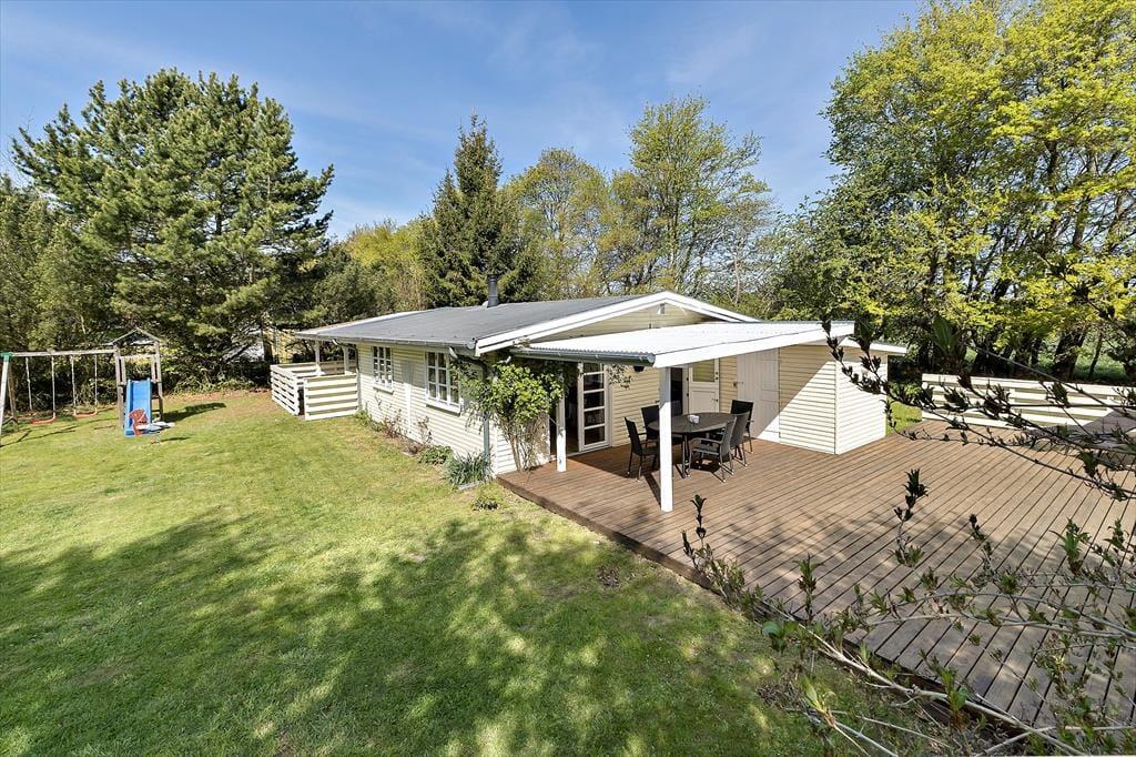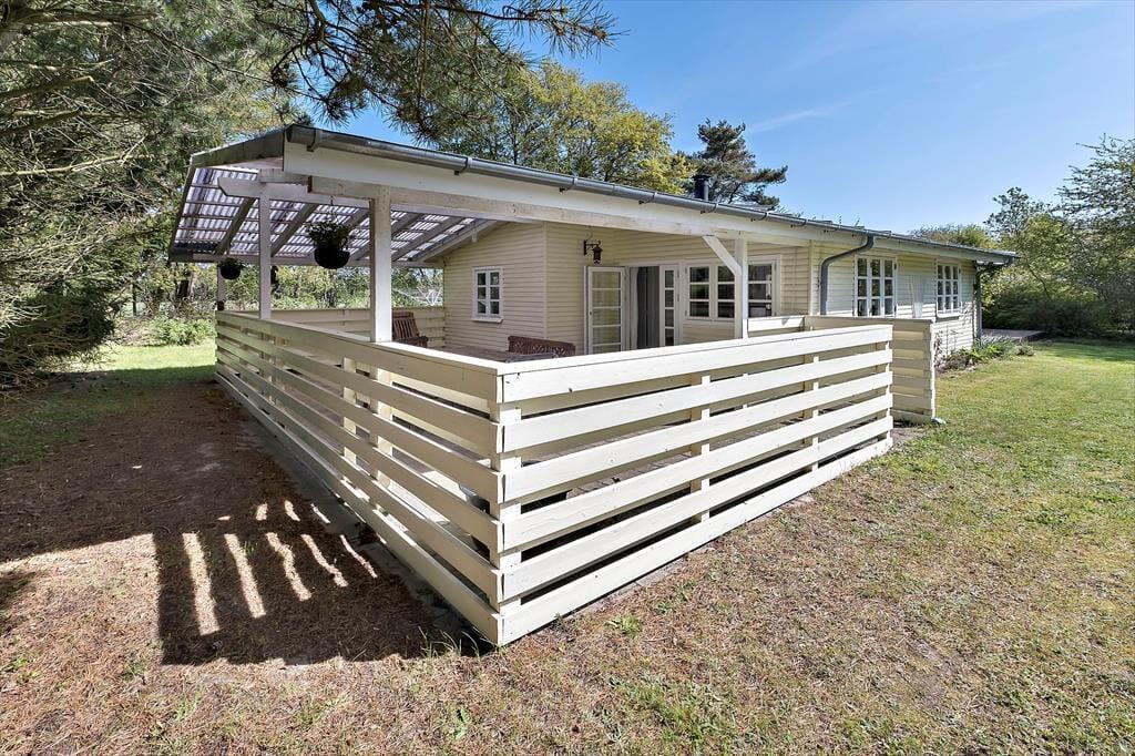 Dette lyse og charmerende sommerhus byder på en hyggelig atmosfære og en funktionel indretning, perfekt til en afslappende ferie. Opholdsstuen er åben og lys, med direkte udgang til den store overdækkede terrasse, hvor du kan nyde en kop kaffe i skyggen eller forlænge sommeraftenerne med et glas vin. I forlængelse af opholdsstuen ligger spisepladsen og det åbne køkken, som gør det nemt at samles om madlavningen og dagens hyggelige måltider. Sommerhuset har to gode soveværelser, hvor du kan vågne op til lyden af naturen, samt et lyst og venligt badeværelse.