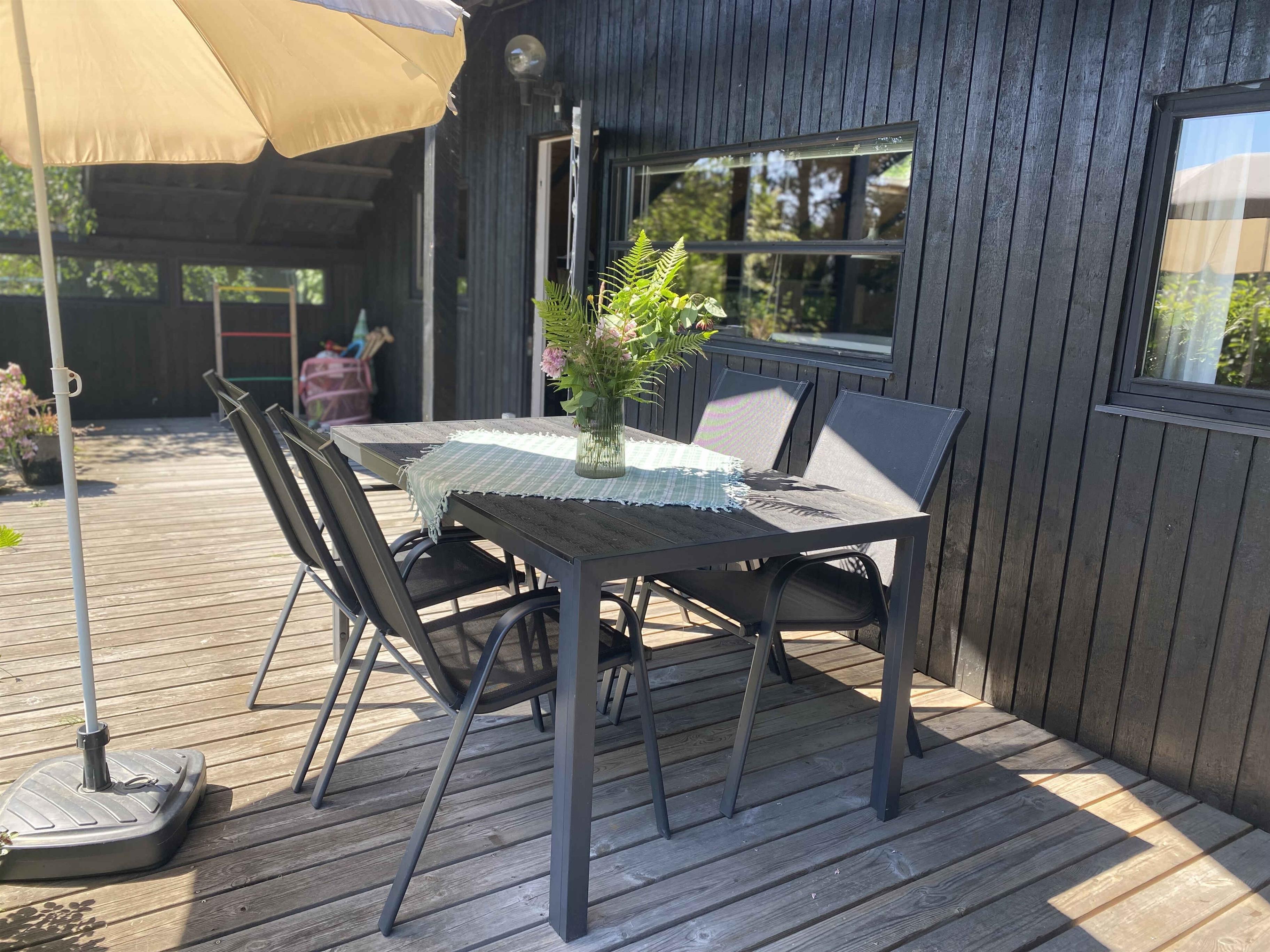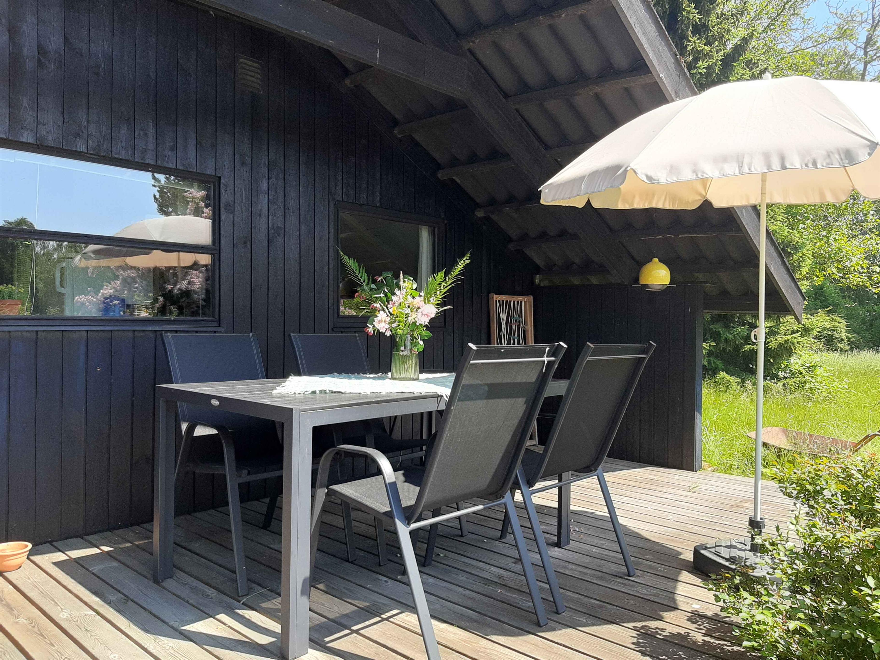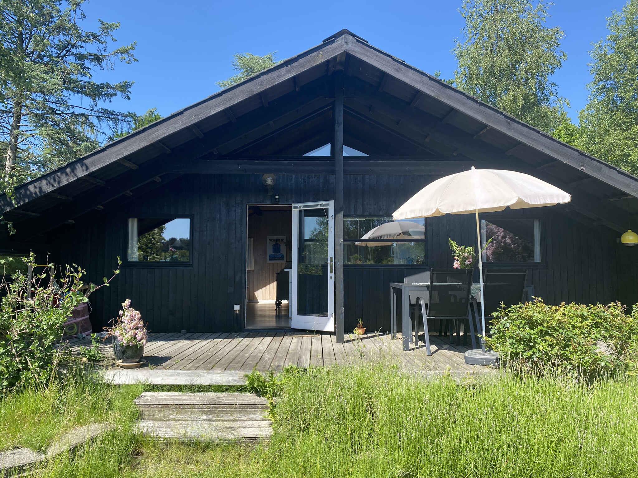 hyggeligt sommerhus med stor have, hvor der er plads til spil og leg, stor terrasse, 4,5 km til standen i Liseleje, 10 minutters gang til skov, 2 km kørsel til indkøb,