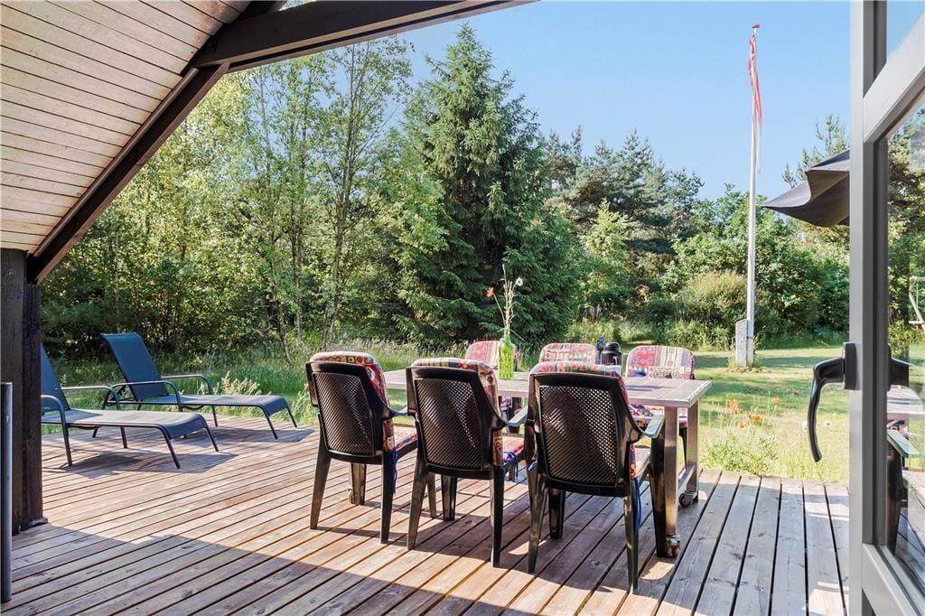 Huset ligger på en meget stor havegrund med grønt hele vejen rundt. Her har I plads til leg, spil og afslapning for alle. I randen af haven er der træer hele vejen rundt, som giver læ og privatliv, men da grunden er så stor, er det ikke på bekostning af sollyset. På husets store terrasse kan I nyde solen, finde den indre grillguru frem eller bare smække benene op med avisen og en kop kaffe - eller lidt senere måske med en kølig feriedrink og en god bog. DET er livet!