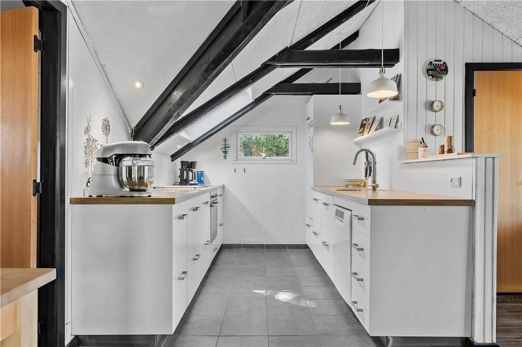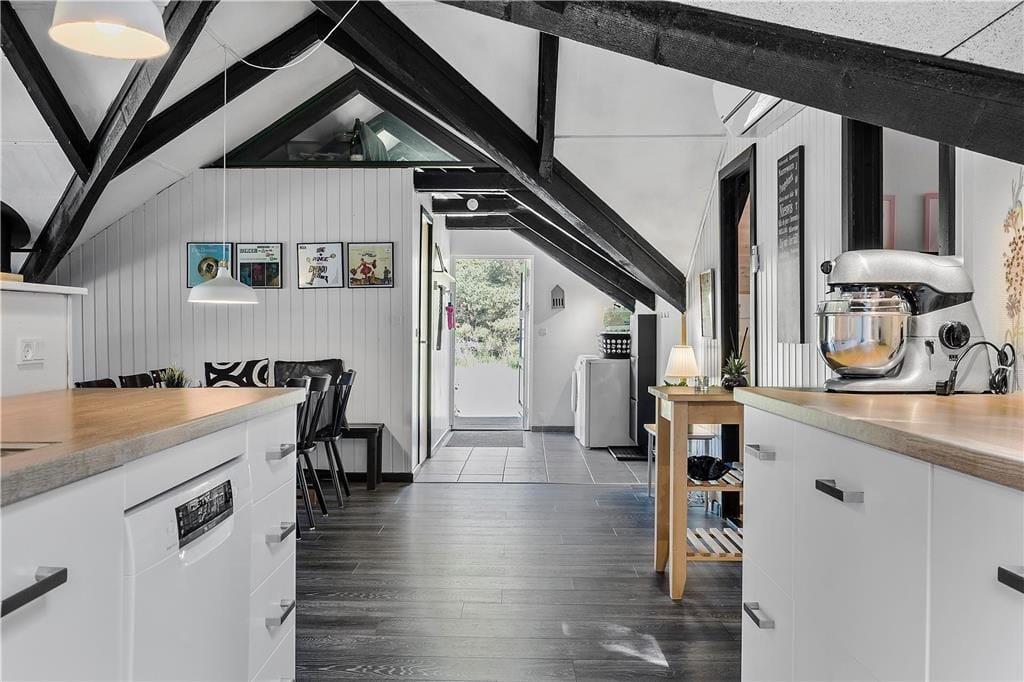 Sommerhuset består af et stort, åbent og moderne køkken mod stue og spisestue, og herfra er der adgang til husets nyere badeværelse og 3 gode soverum med hhv. dobbeltseng, to enkeltsenge og dobbelt sovesofa. Her føler man, at man har god plads, og huset oser af god gammeldags dansk sommerhushygge - men med de moderne fornødenheder og indretninger, man forventer og nyder i dag. Her er desuden lynhurtig bredbåndsforbindelse, så tag endelig iPads og deslige med, så ungerne kan slappe af efter en aktivitetsfuld dag, og så næste dags ferieudskejelser kan planlægges.