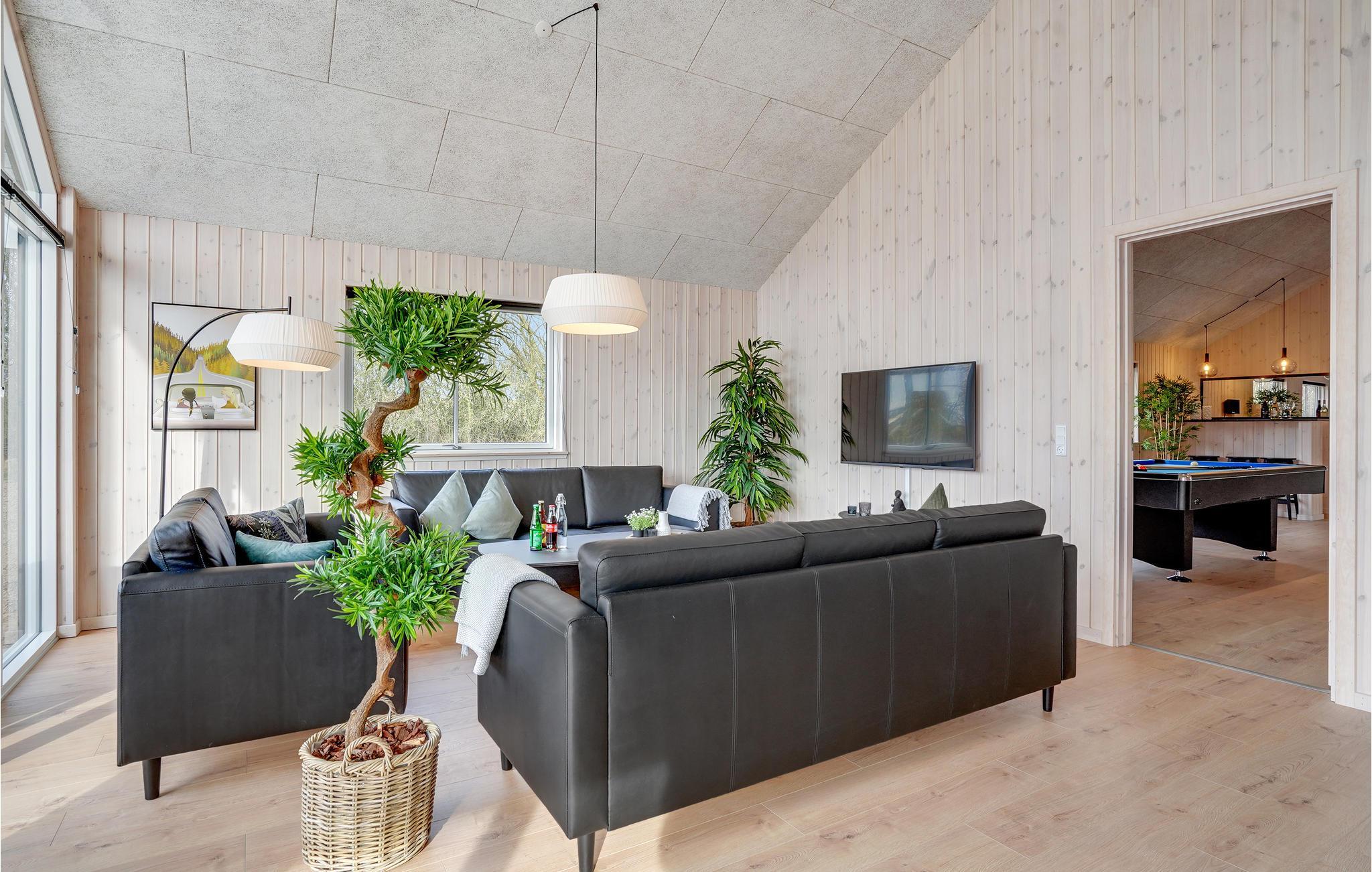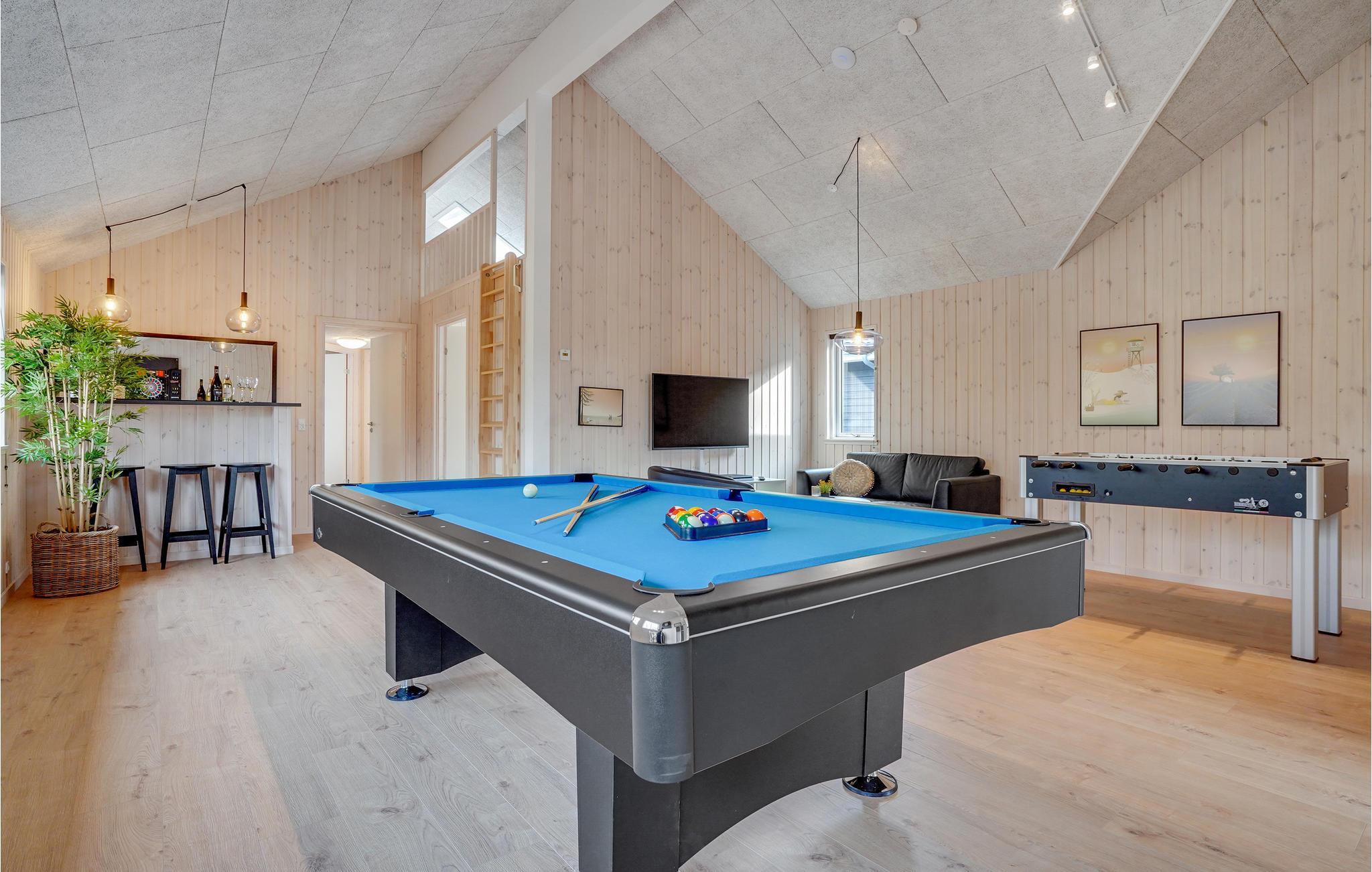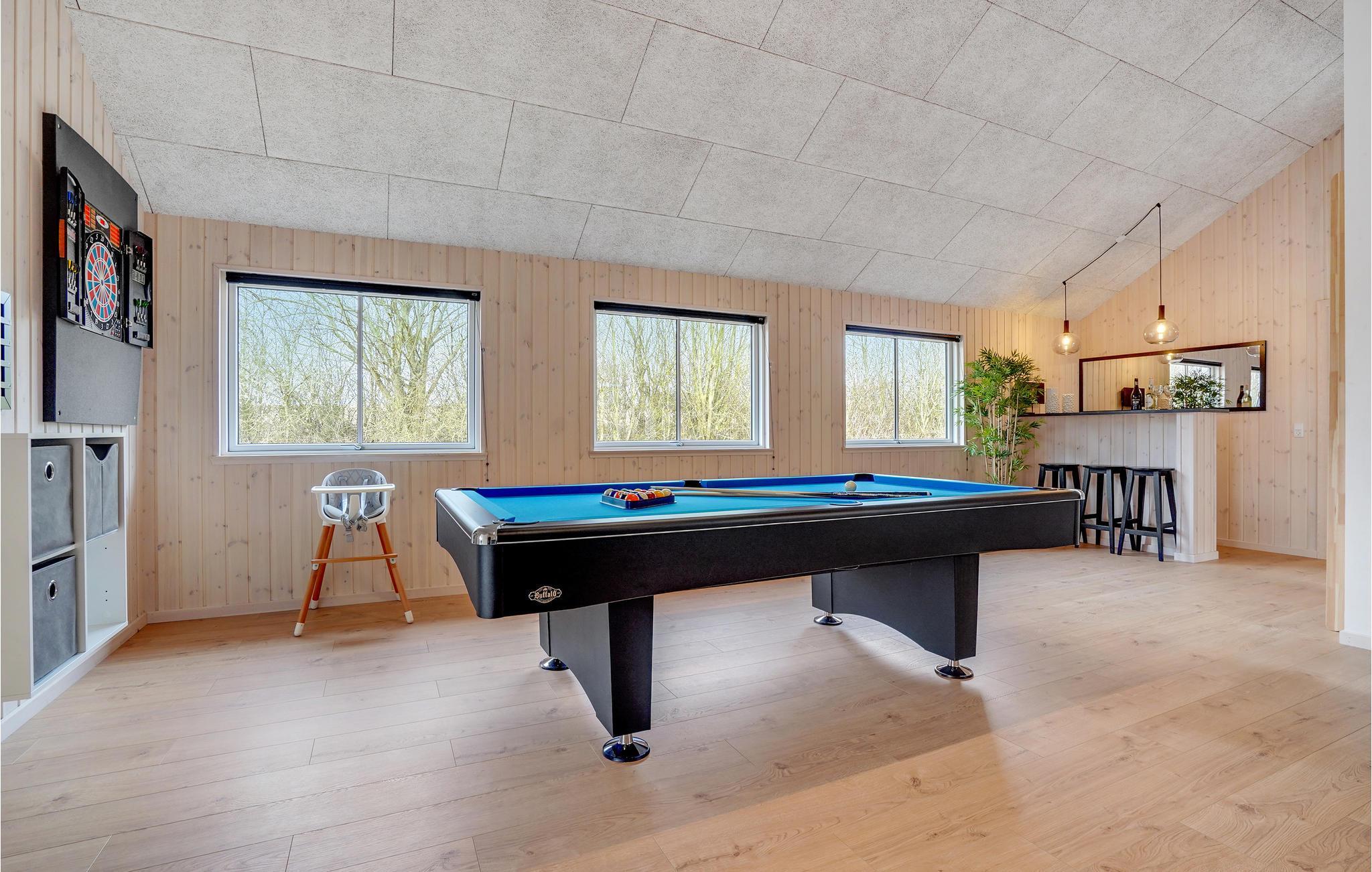 Dette skønne feriehus indbyder til en afslappende og yderst behagelig ferie på øen Als. Huset er ideelt til flere familier eller en større gruppe venner. Det er meget veludstyret og byder på mange moderne og komfortable faciliteter, så I kommer ikke til at mangle noget. Tilbring sjove timer med at plaske rundt i poolen, nyd en drink i spabadet og få varmen i saunaen på kølige dage. Bordfodbold, bordtennis, billard og Playstation 4 sikrer underholdningen - her kommer I aldrig til at kede jer. Der er desuden projektor og lærred, så I kan nemt skabe biografstemning.