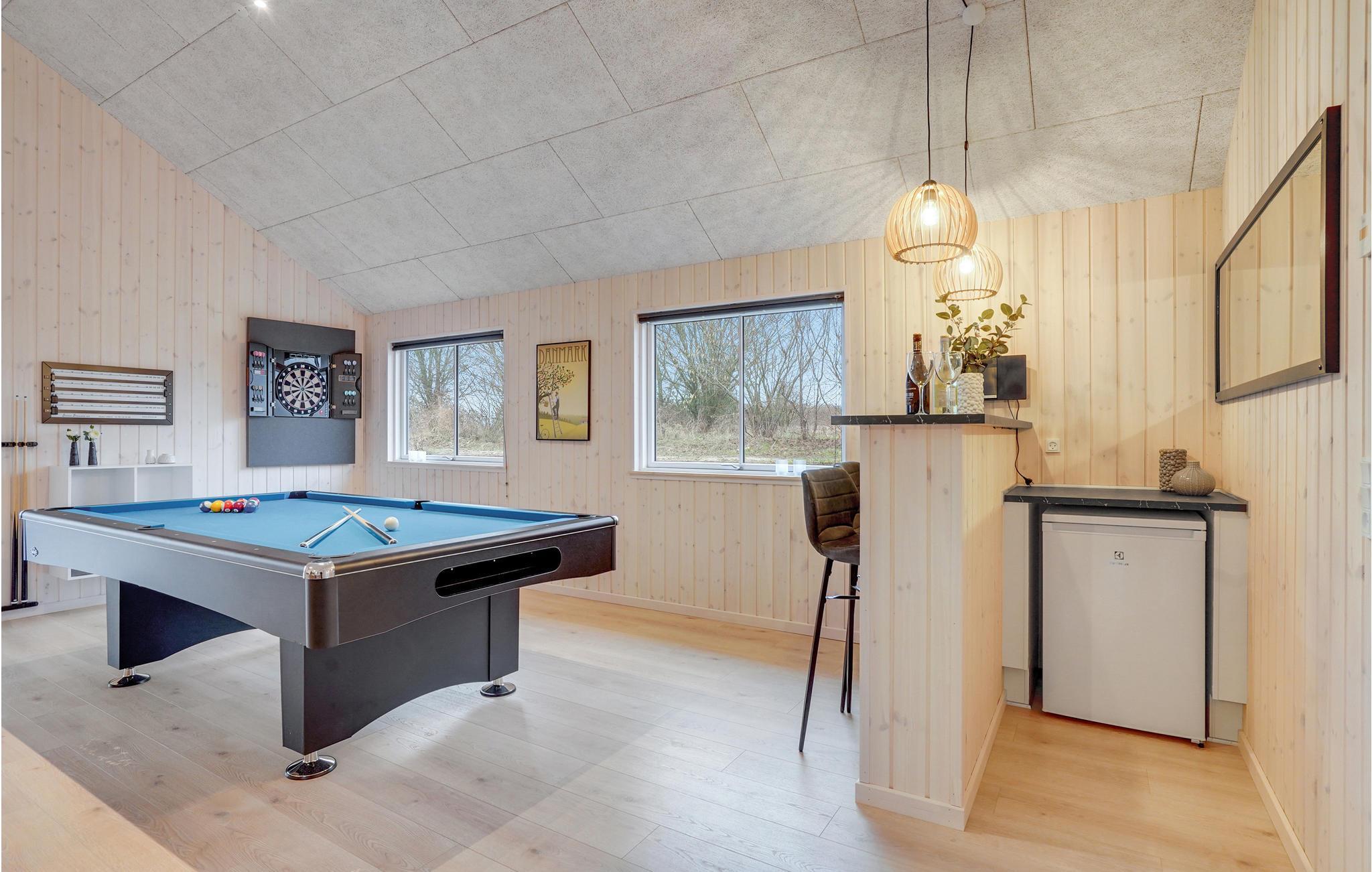 Dette skønne feriehus indbyder til en afslappende og yderst behagelig ferie på øen Als. Huset er ideelt til flere familier eller en større gruppe venner. Det er meget veludstyret og byder på mange moderne og komfortable faciliteter, så I kommer ikke til at mangle noget. Tilbring sjove timer med at plaske rundt i poolen, nyd en drink i spabadet og få varmen i saunaen på køligere dage. Bordfodbold, bordtennis, billard og Playstation 4 sikrer underholdningen - her kommer I aldrig til at kede jer.