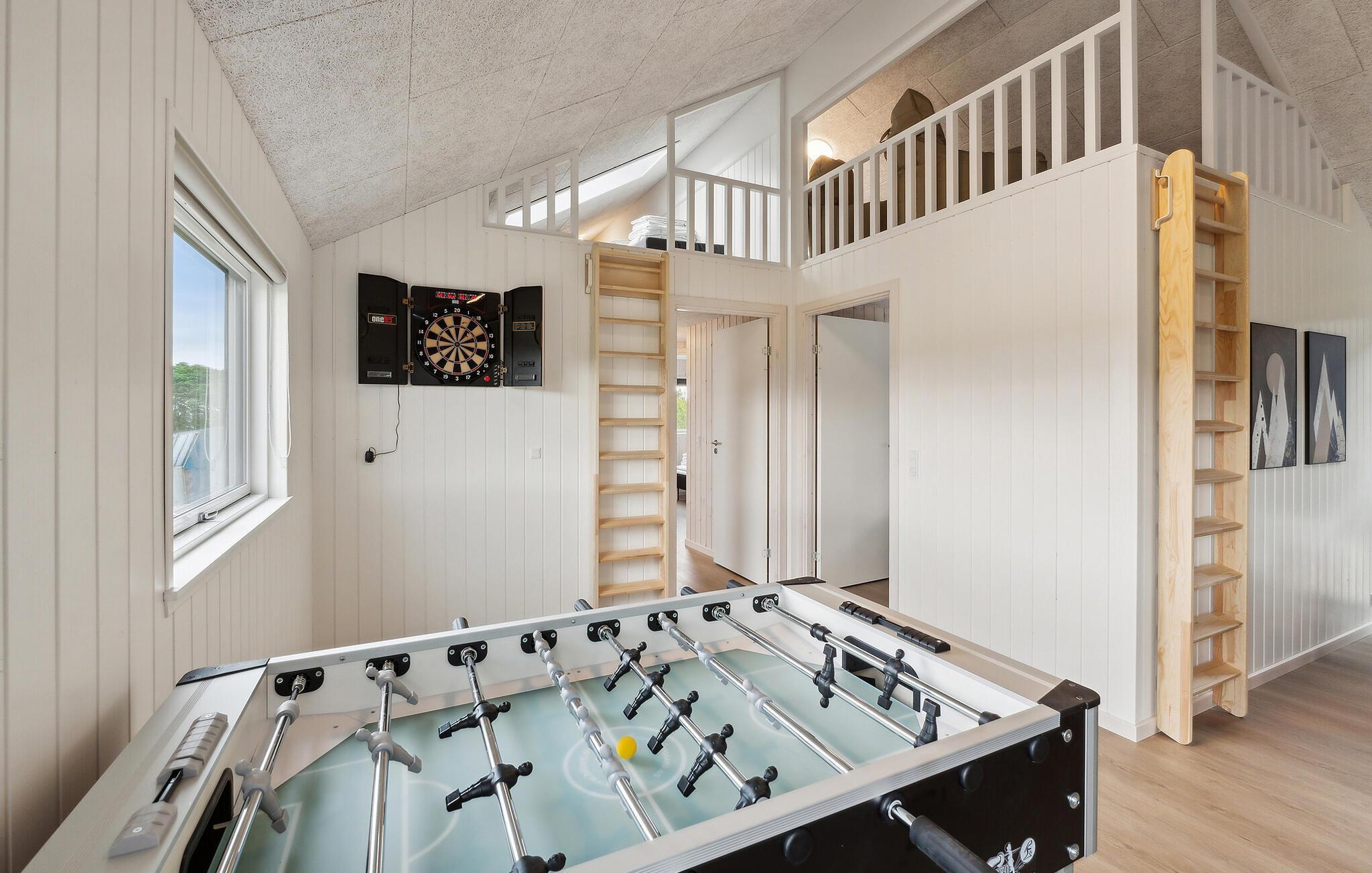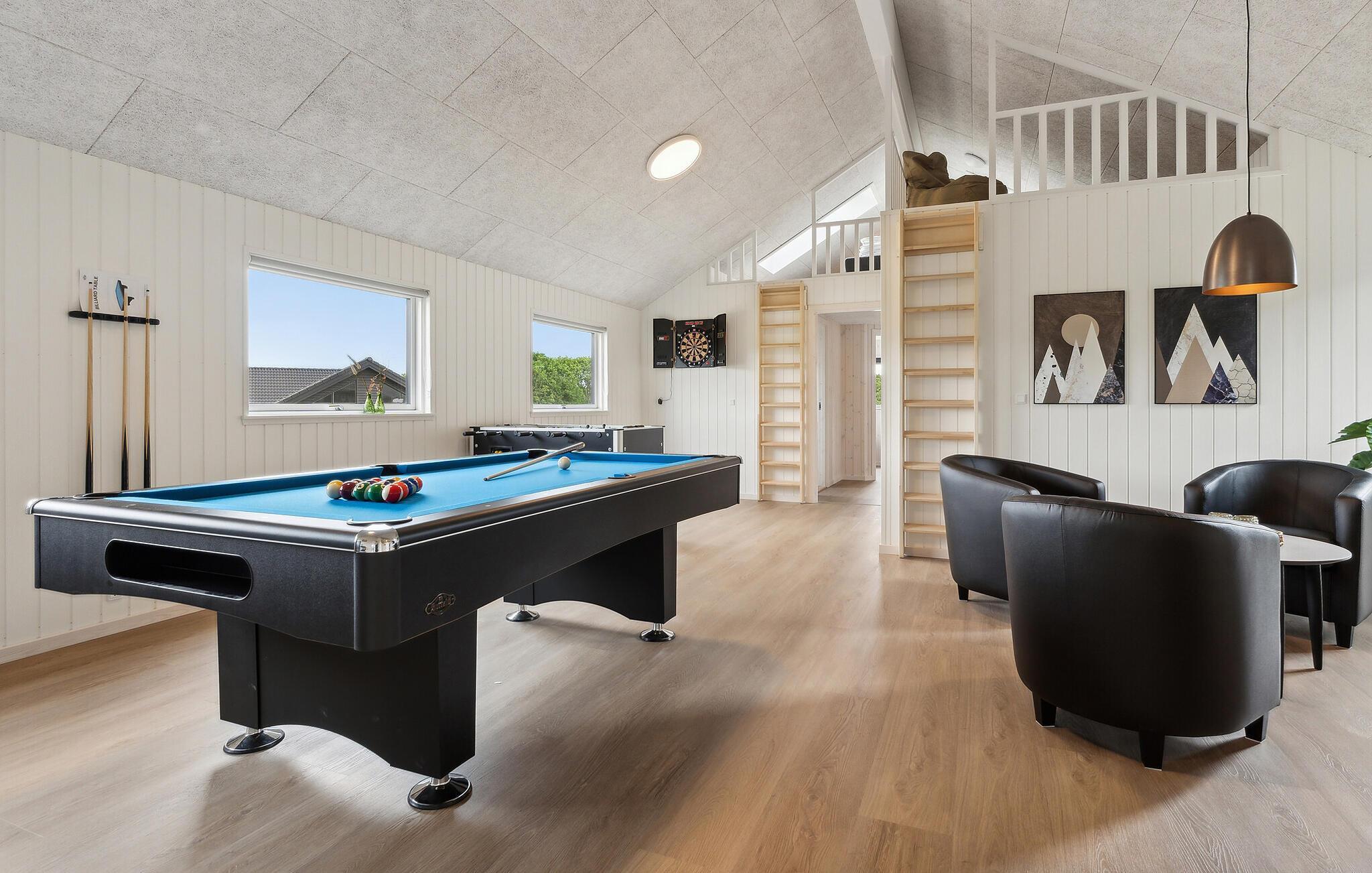 Tag den udvidede familie eller flere vennefamilier under armen og rejs til Als, hvor der venter jer et fantastisk ophold i dette lækre feriehus. Her kan I se frem til en bolig med masser af plads, en flot, moderne indretning og masser af faciliteter, der gør det umuligt at kede sig. Huset består af to fløje med aktivitetsrum, sauna og pool, der indbyder til masser af sjov for hele familien. Uanset vejret kan I lade børnene plaske rundt i poolen, mens I spiller billard eller kræser om maden i det veludstyrede køkken. Dæk op til det helt store festmåltid i stuen og rund en vidunderlig dag af med et godt glas vin over et brætspil i sofahjørnet.
