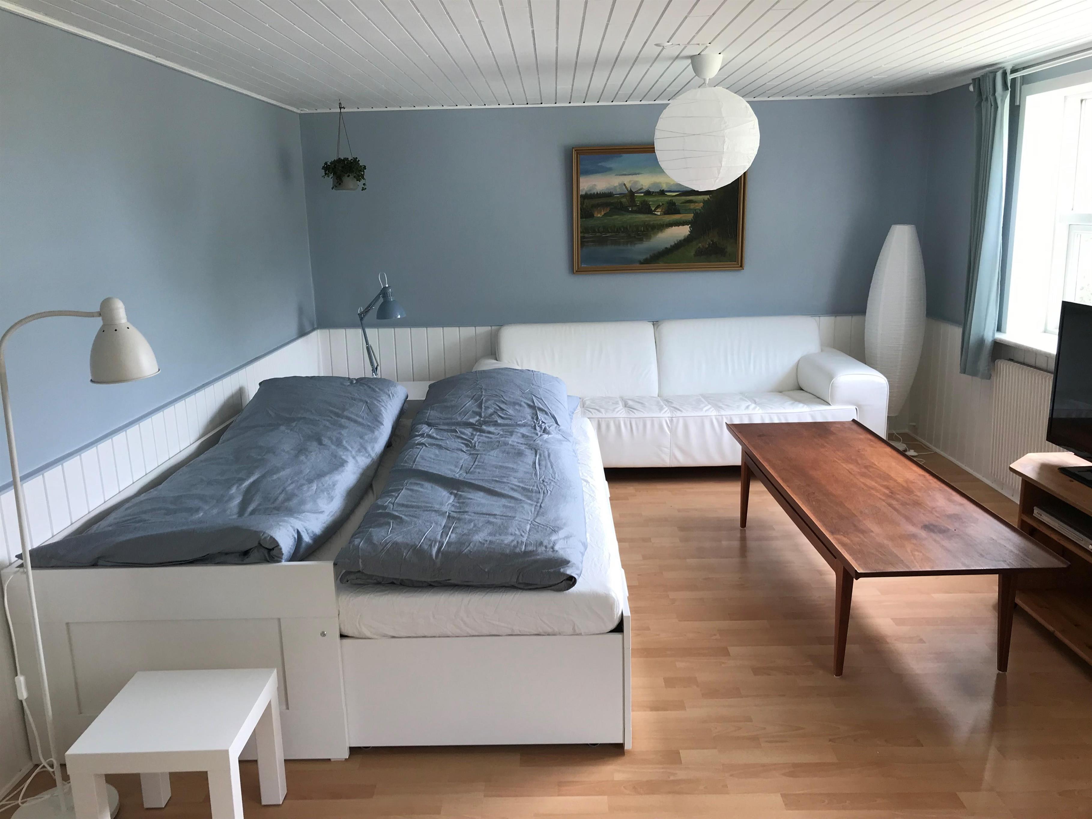 Der er to værelser, et med dobbeltseng samt børne-tremmeseng og et med trekvart-seng. I stuen er der sovesofa, som kan laves til dobbeltseng (160x200 cm).