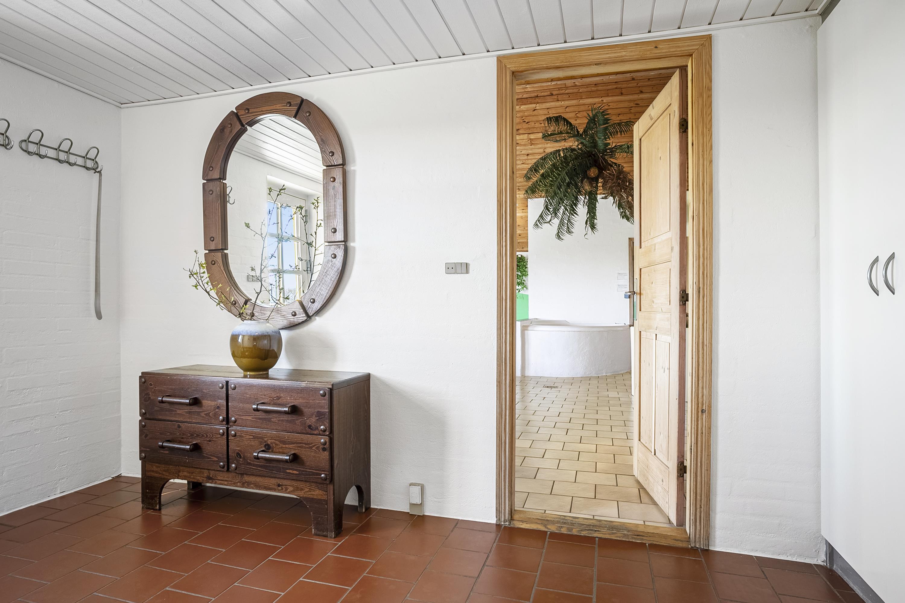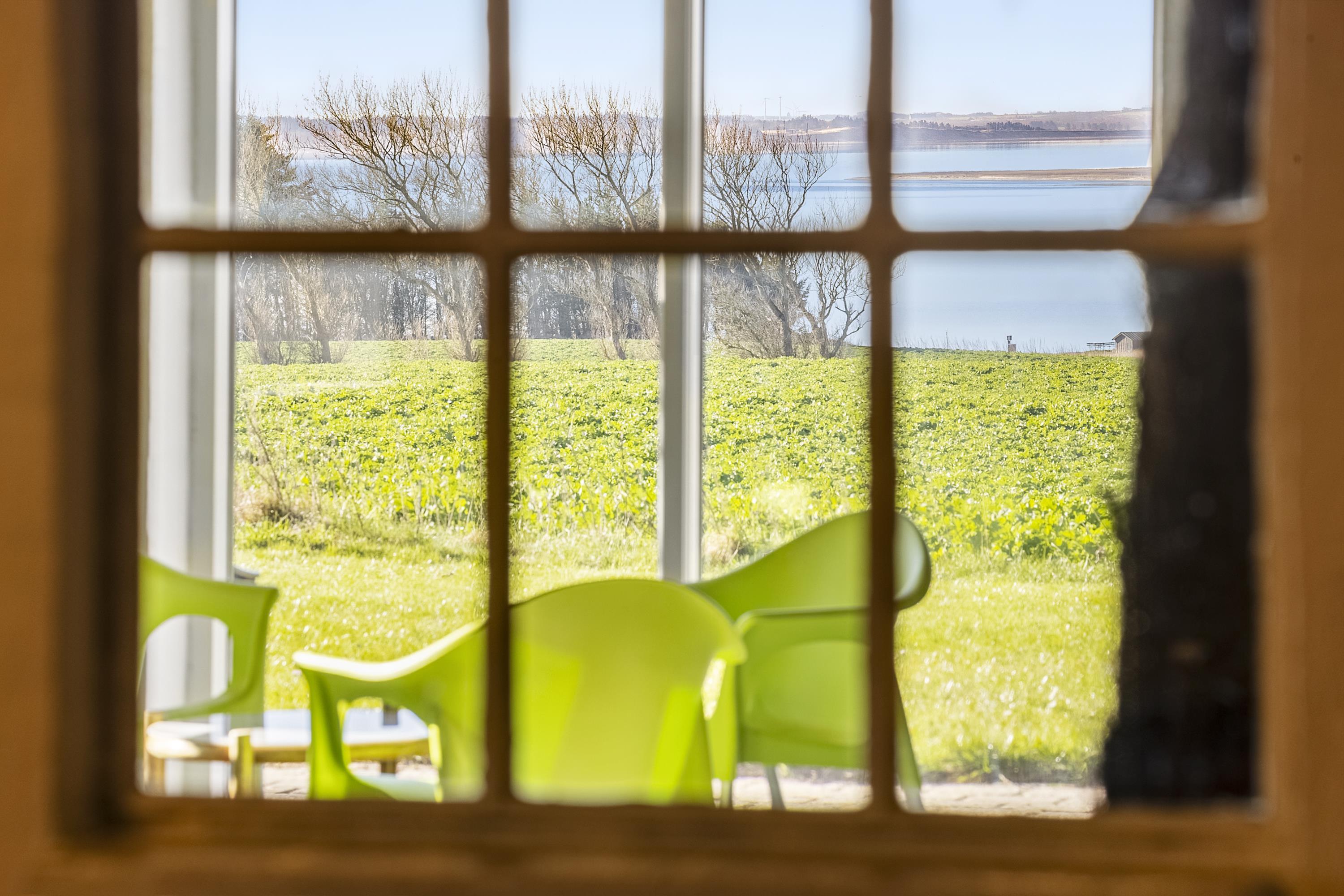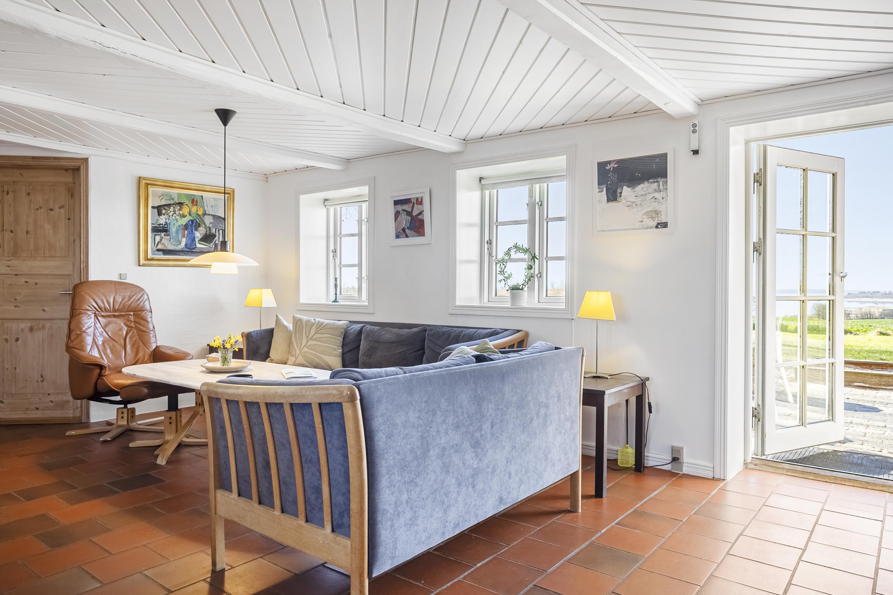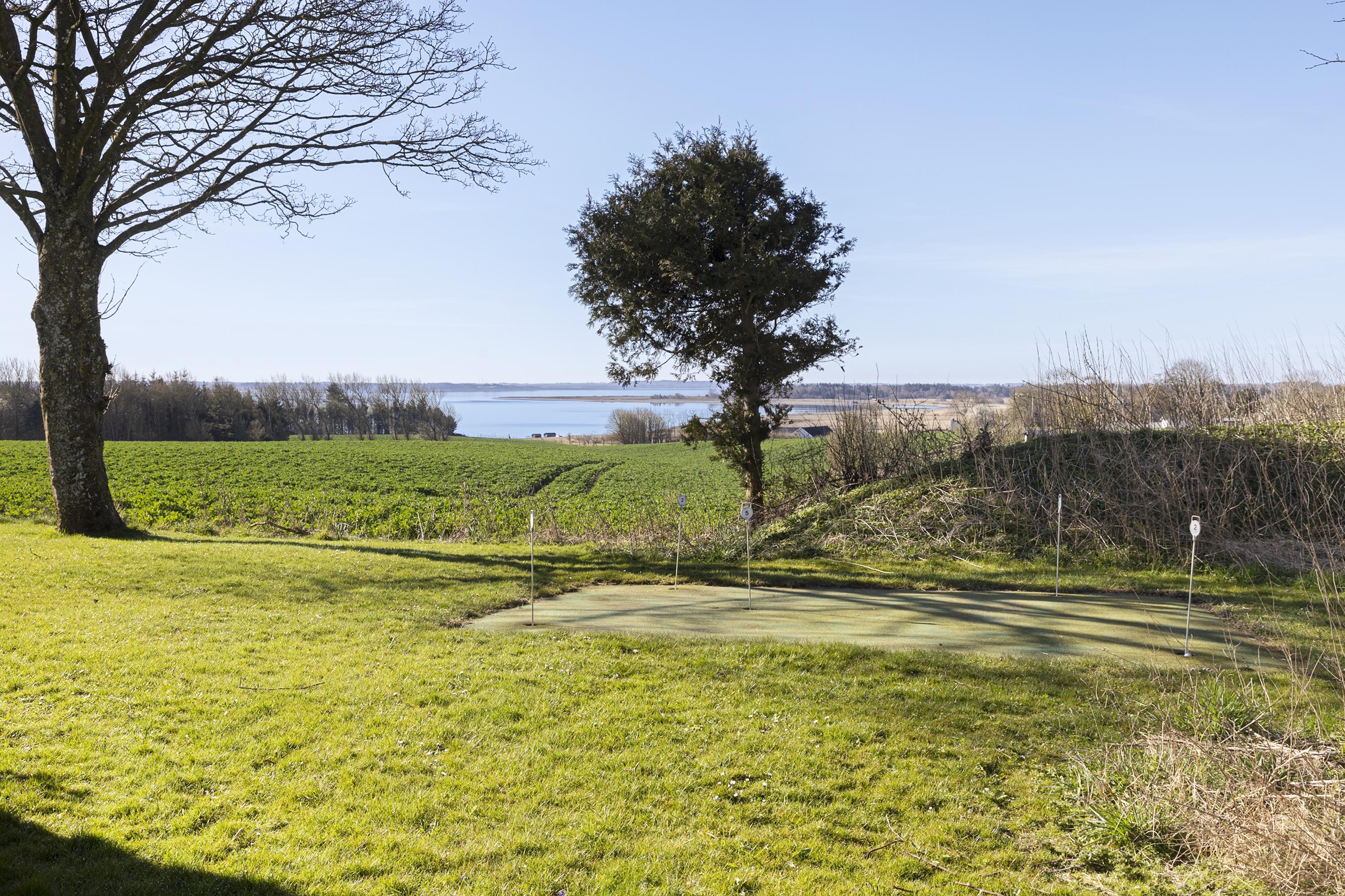 Udendørs venter et 1800 m² stort naturgrundstykke med grillområde, putting green, petanquebane, gynger og sandkasse. Her er der rig mulighed for leg, spil og afslapning i solen. Som en ekstra oplevelse kan I tage på opdagelse i fjorden med husets originale Limfjordskajak.