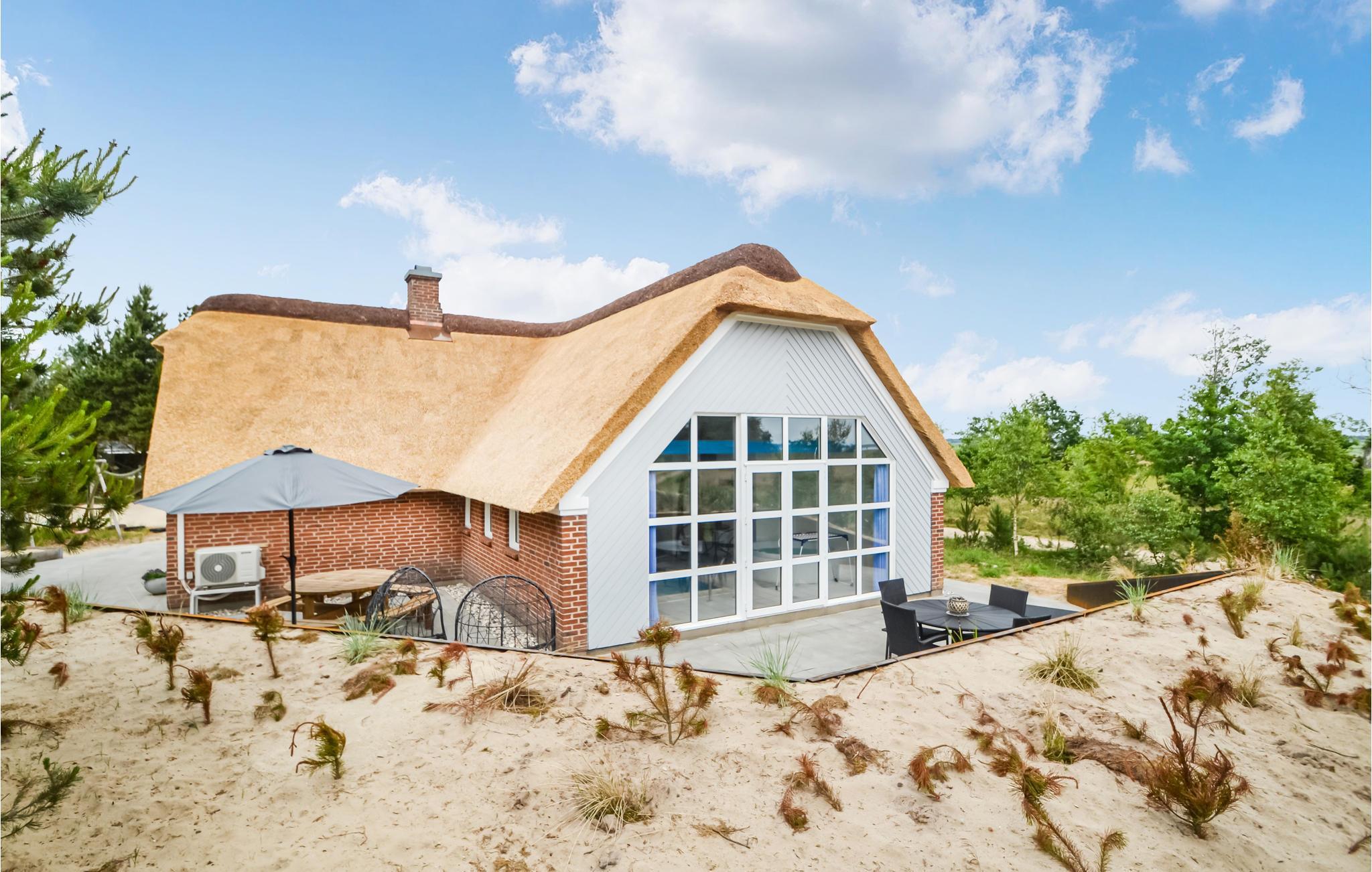 I det naturskønne skovområde ved Mosevrå, ligger dette lækre sommerhus med aktivitetsrum, swimmingpool afdeling med spabad og adgang til sauna. Huset er rigtig godt indrettet med et dejligt køkken i sammenhæng med stuen, hvor der er brændeovn og udgang til en sydvestvendt terrasse. På første sal er der aktivitetsrum med bordfodbold, airhockey samt PlayStation2. På grunden findes også flere aktiviteter, bl.a. beachvolleybane, trampolin, gynger og sandkasse. Fra huset er der ca. 15 minutters kørsel i bil til f.eks. Blåvand Strand og Vejers Strand. Der er desuden mange muligheder for at cykle eller vandre i den skønne natur, der er bl.a. cykelsti til Blåvand, kendt for sine skønne, børnevenlige badestrande samt gode indkøbsmuligheder. På Vejers Strand er det, på visse dele af stranden, tilladt at køre i bil helt ned til vandkanten.