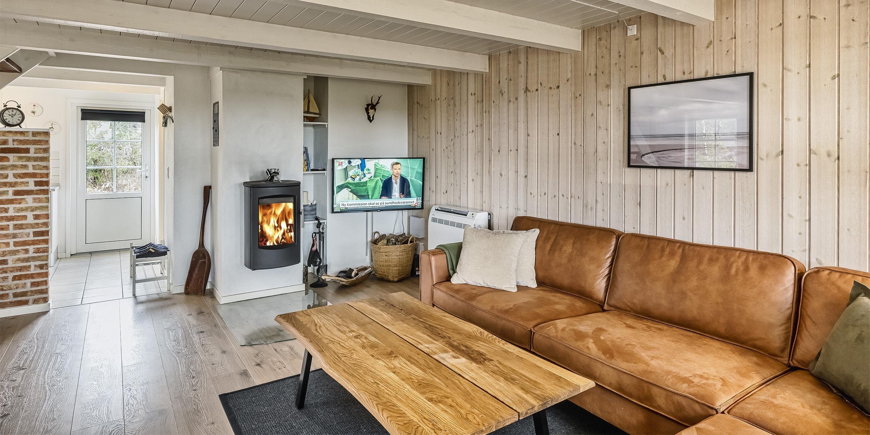 Huset er el opvarmet, der suppleres med en ny varmepumpe og brændeovn. Privat oplader til elbiler (type 2).