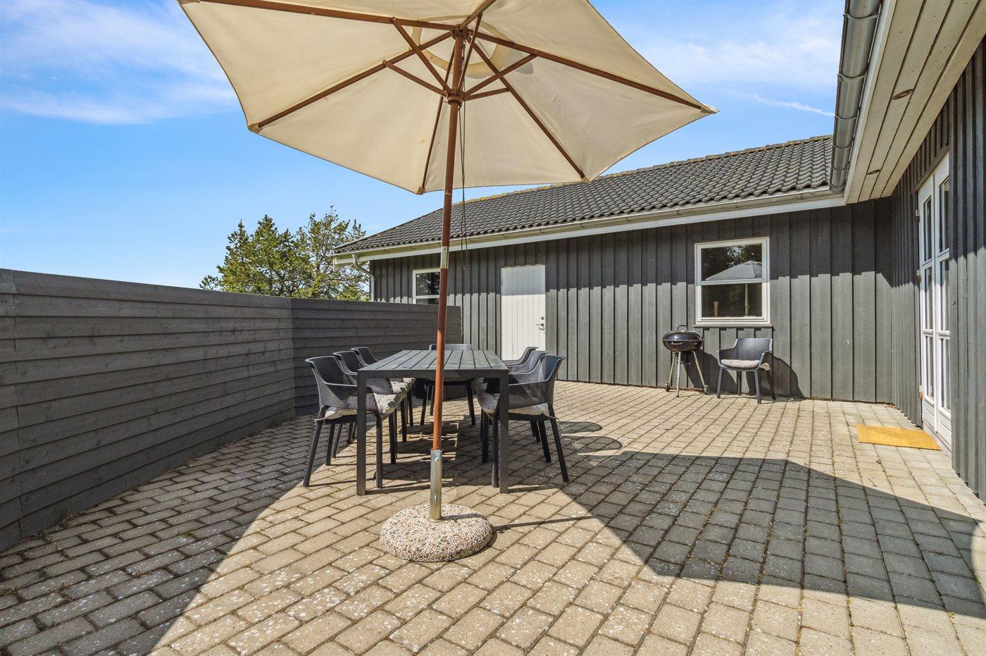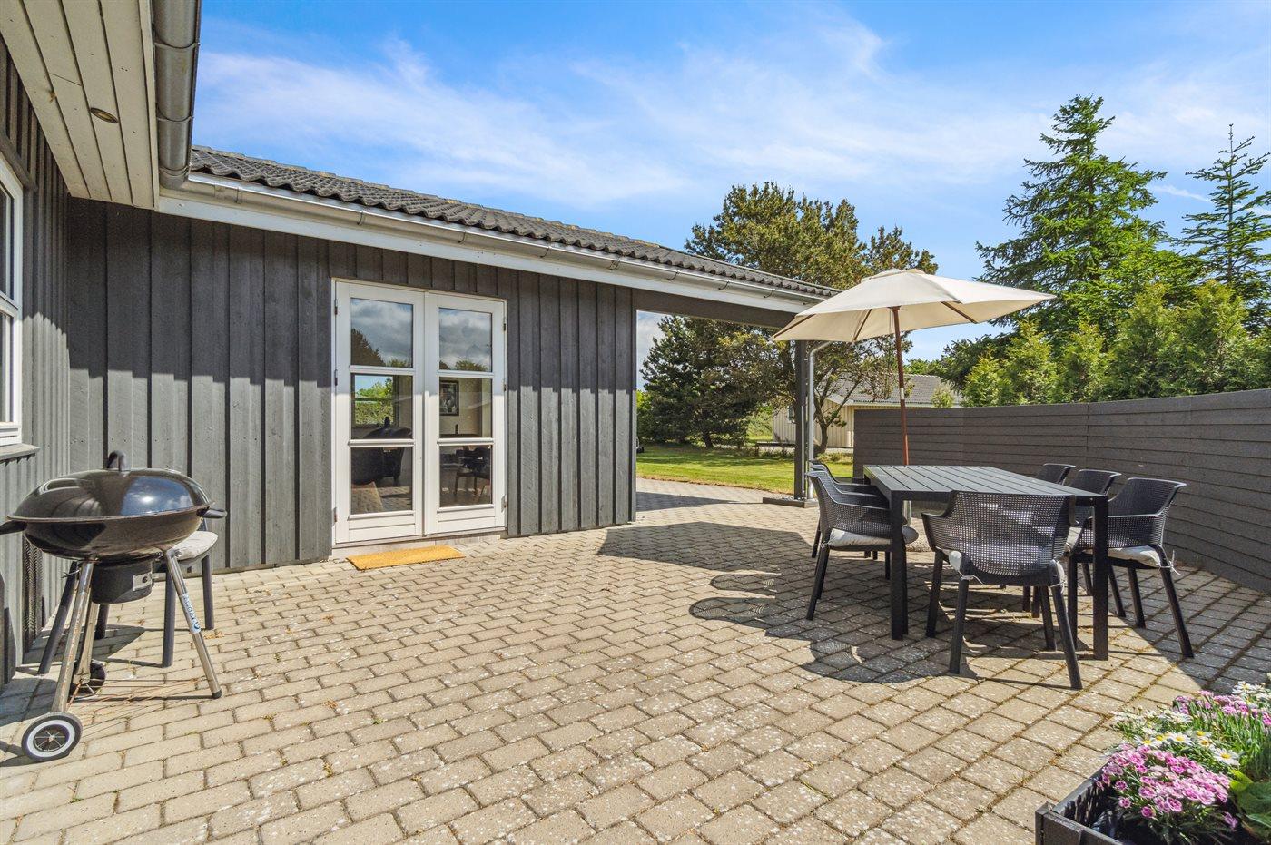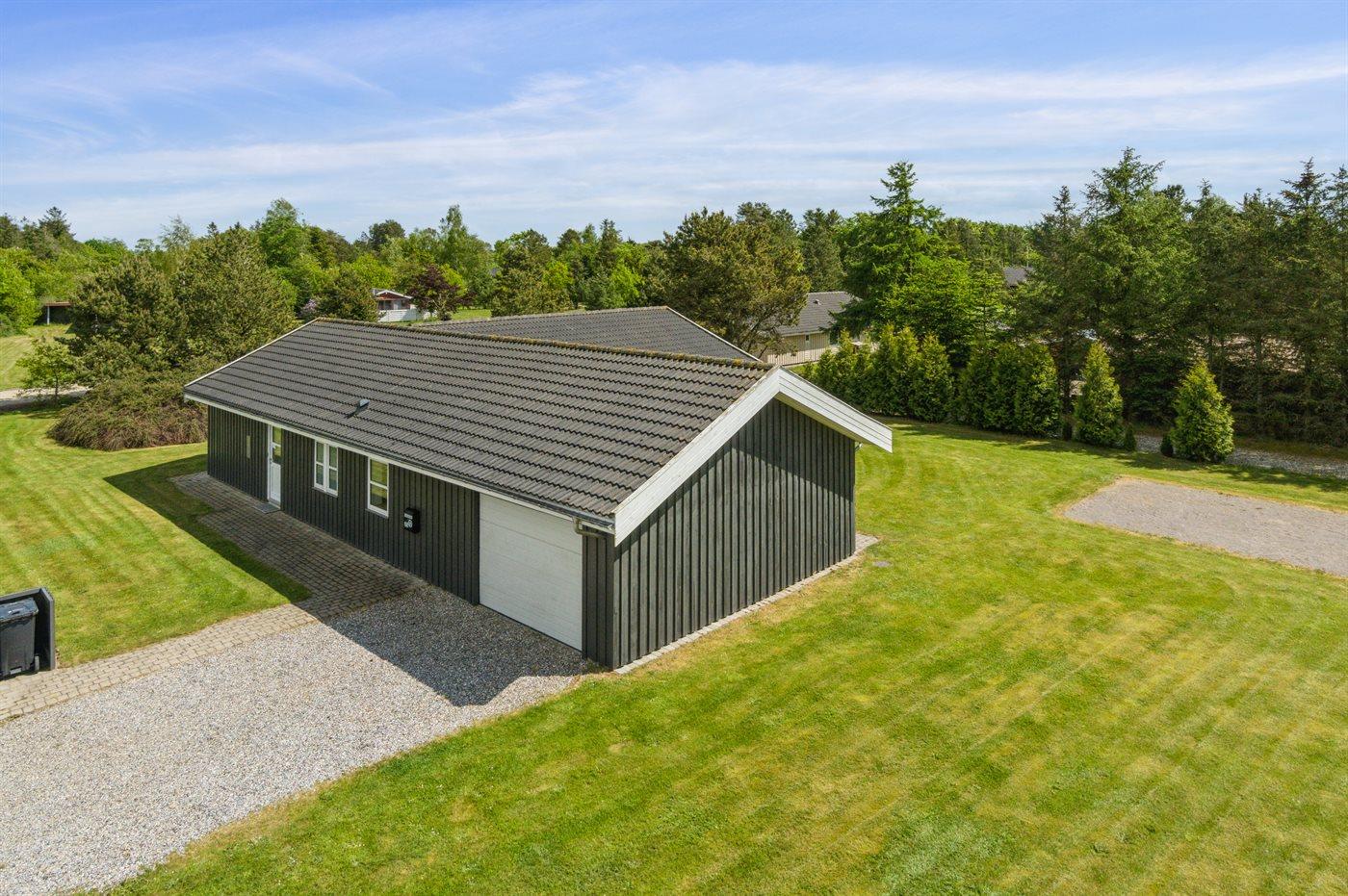 Ferieboligen er beliggende på en 1646 m² stor naturgrund. Der er 5000 m til havet. Der er 500 m til fjorden. Nærmeste forretning er beliggende i en afstand af 1000 m. Til ferieboligen hører 40 m² terrasseareal. Desuden er der 15 m² overdækket terrasse. Gynge. Legehus. Trampolin. Petanque. Bålsted. Grill til rådighed. Parkering ved ferieboligen.