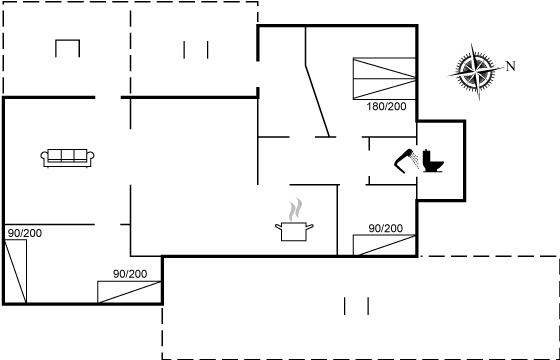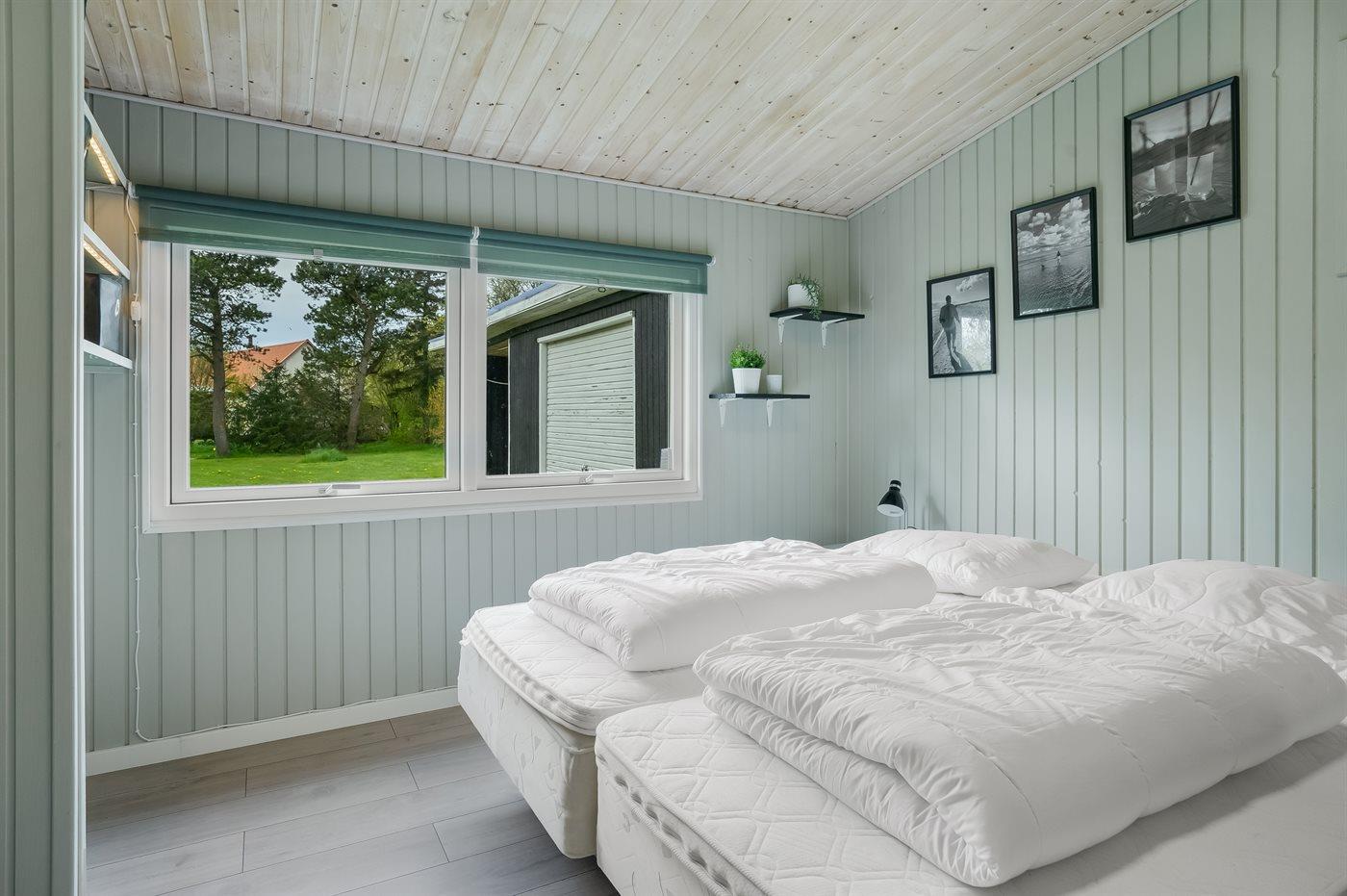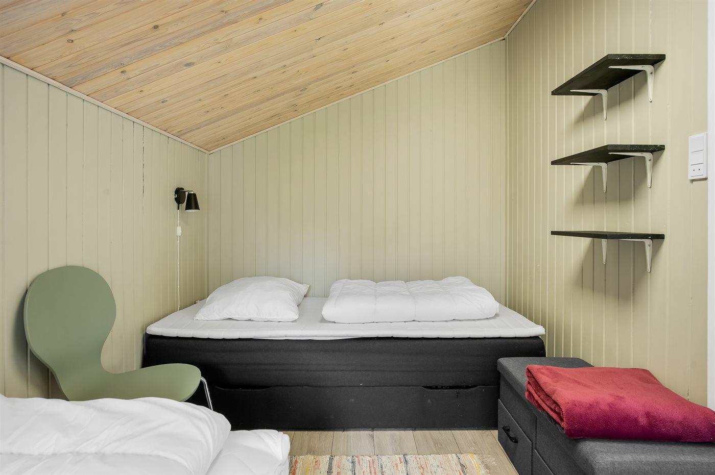 Der er i alt 3 soveværelser. Sovepladserne fordeler sig på: 2 sovepladser i dobbeltseng. 3 sovepladser i enkeltsenge. Derudover er der 1 stk. barneseng.