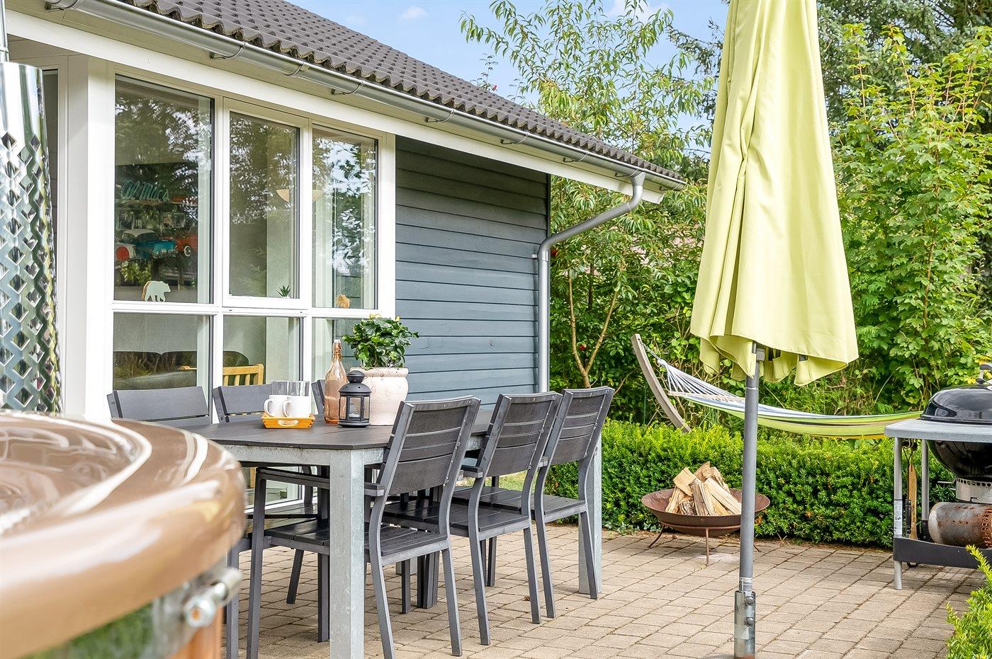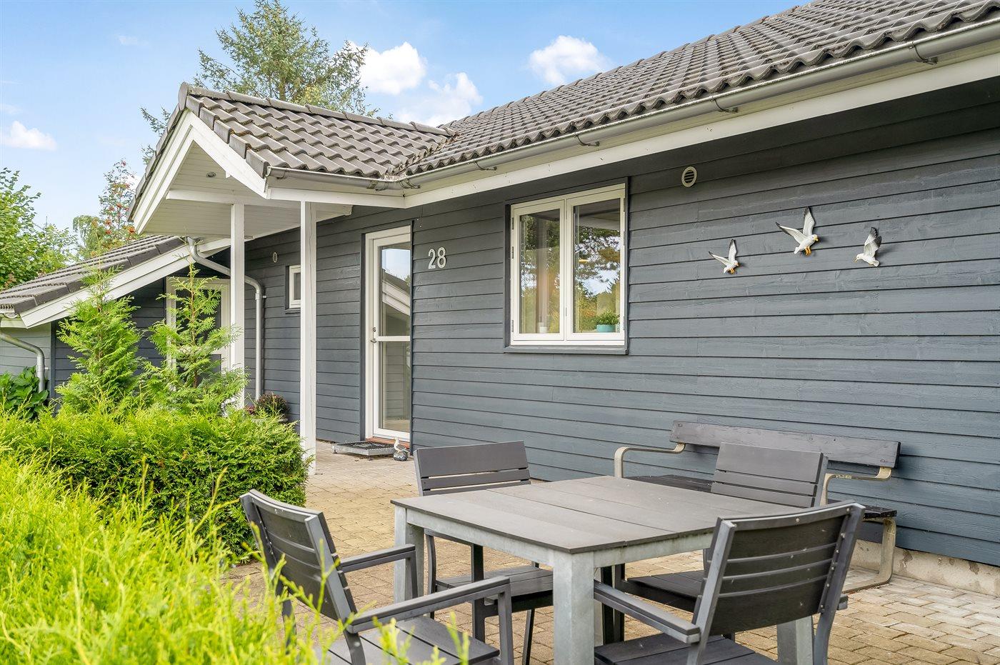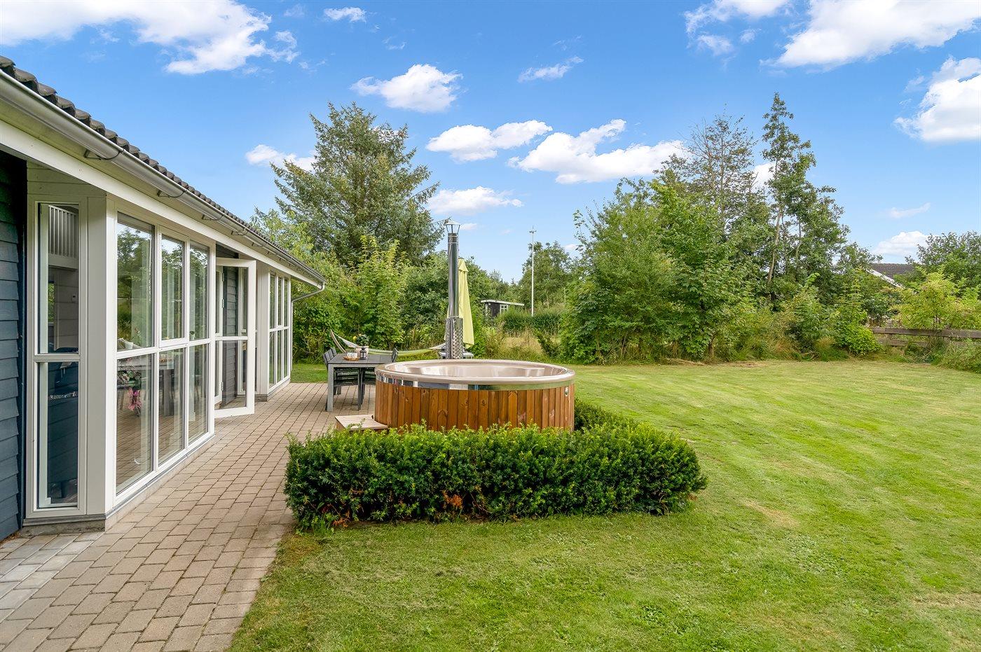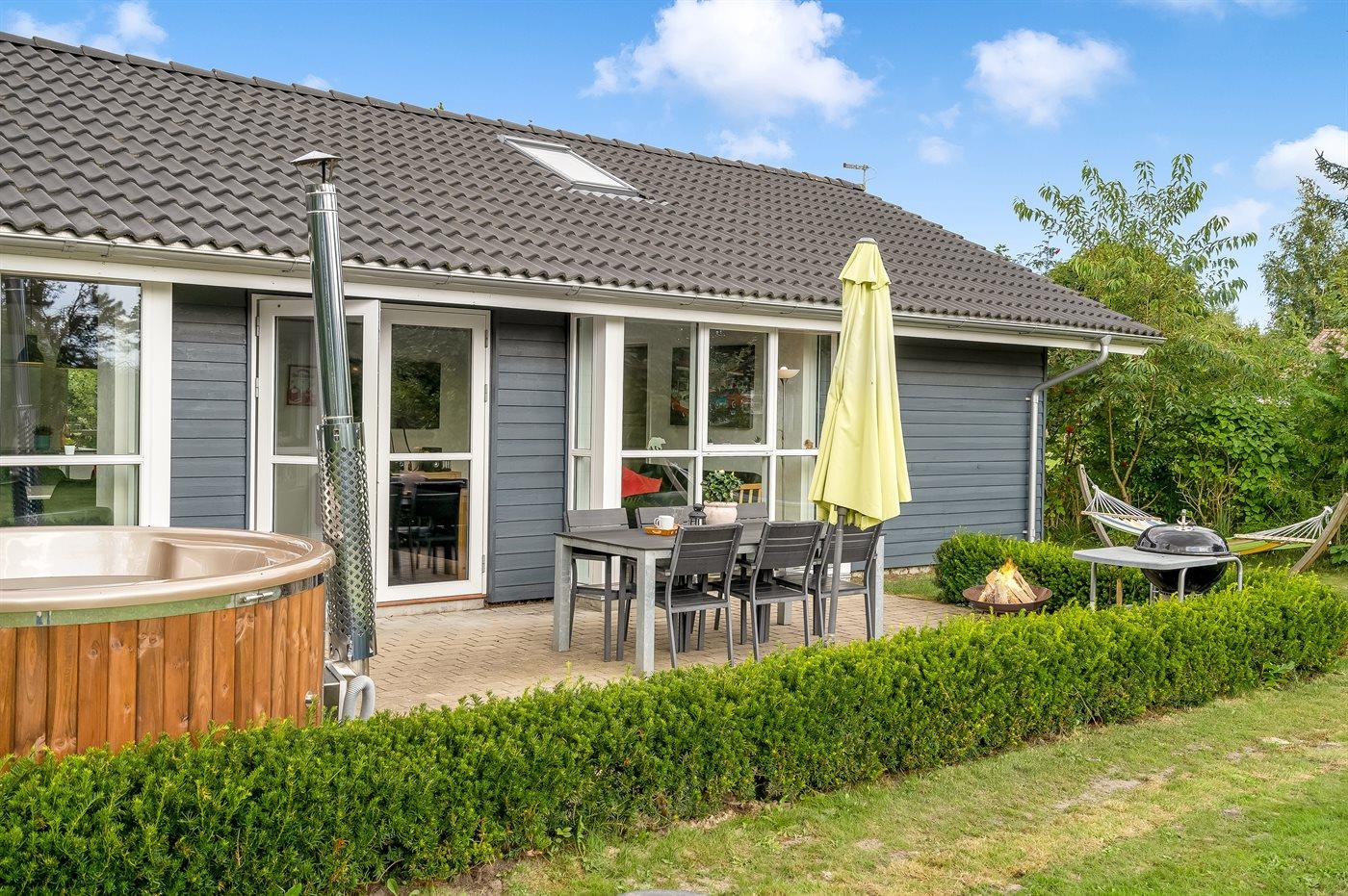 Flot sommerhus med spa, indhegnet have, shelter og boldbane nær fjord og hav i Storvorde.