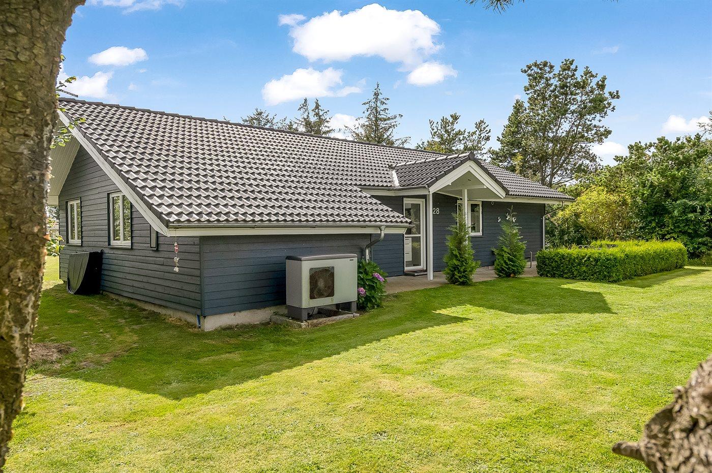 Ferieboligen er beliggende på en 2626 m² stor havegrund. Grunden er indhegnet. Der er 7000 m til havet. Der er 400 m til fjorden. Nærmeste forretning er beliggende i en afstand af 2000 m. Til ferieboligen hører åbent terrasseareal. Der er redskabsrum. Gynge. Legetårn. Rutchebane. Bålsted. Shelter. Grill til rådighed. Parkering ved ferieboligen.