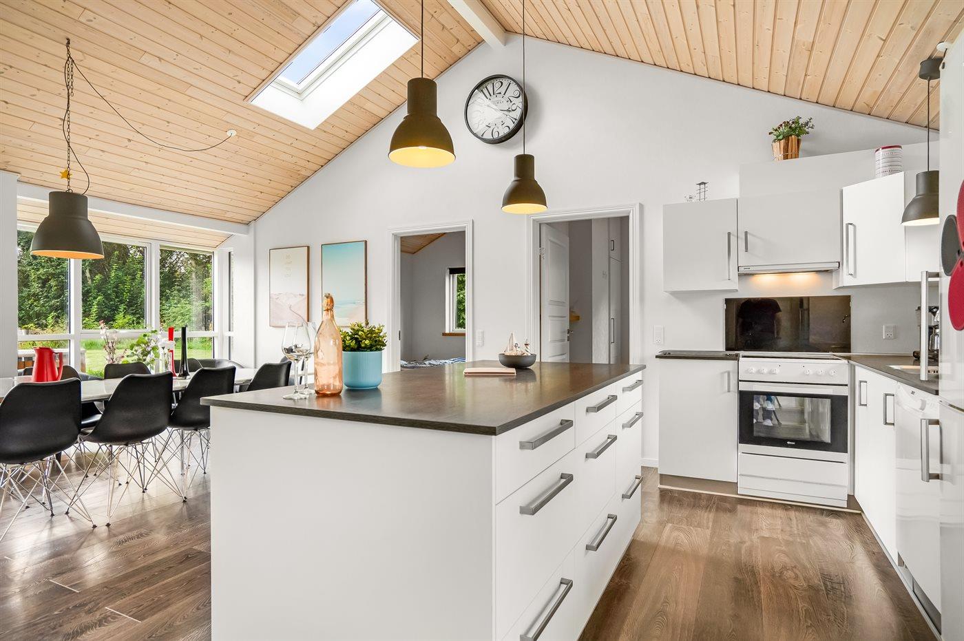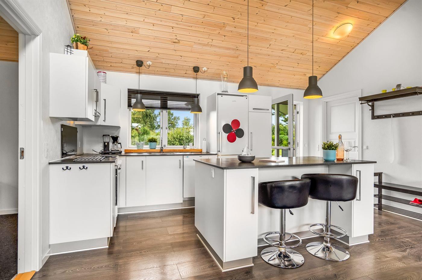 Køkkenet er udstyret med 1 køleskab. Der er 4 keramiske kogeplader, varmluftovn, mikrobølgeovn samt opvaskemaskine.