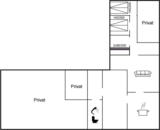 Der er i alt 3 soveværelser. Sovepladserne fordeler sig på: 4 sovepladser i dobbeltsenge. 2 sovepladser i køjeseng.