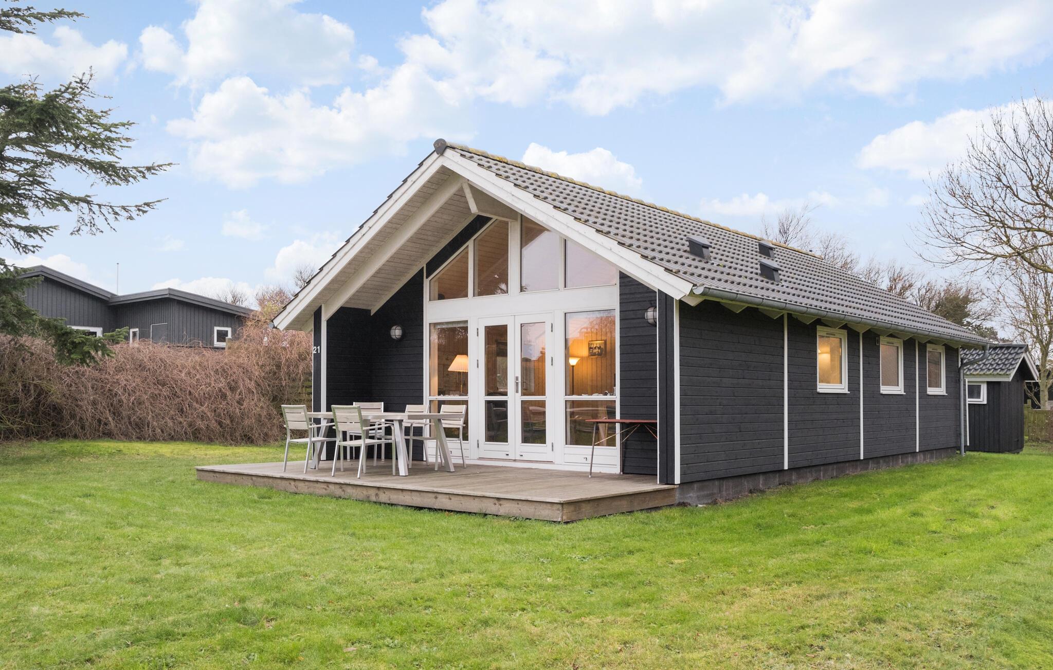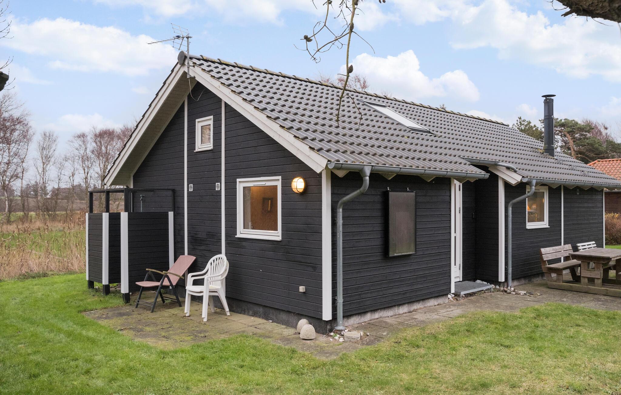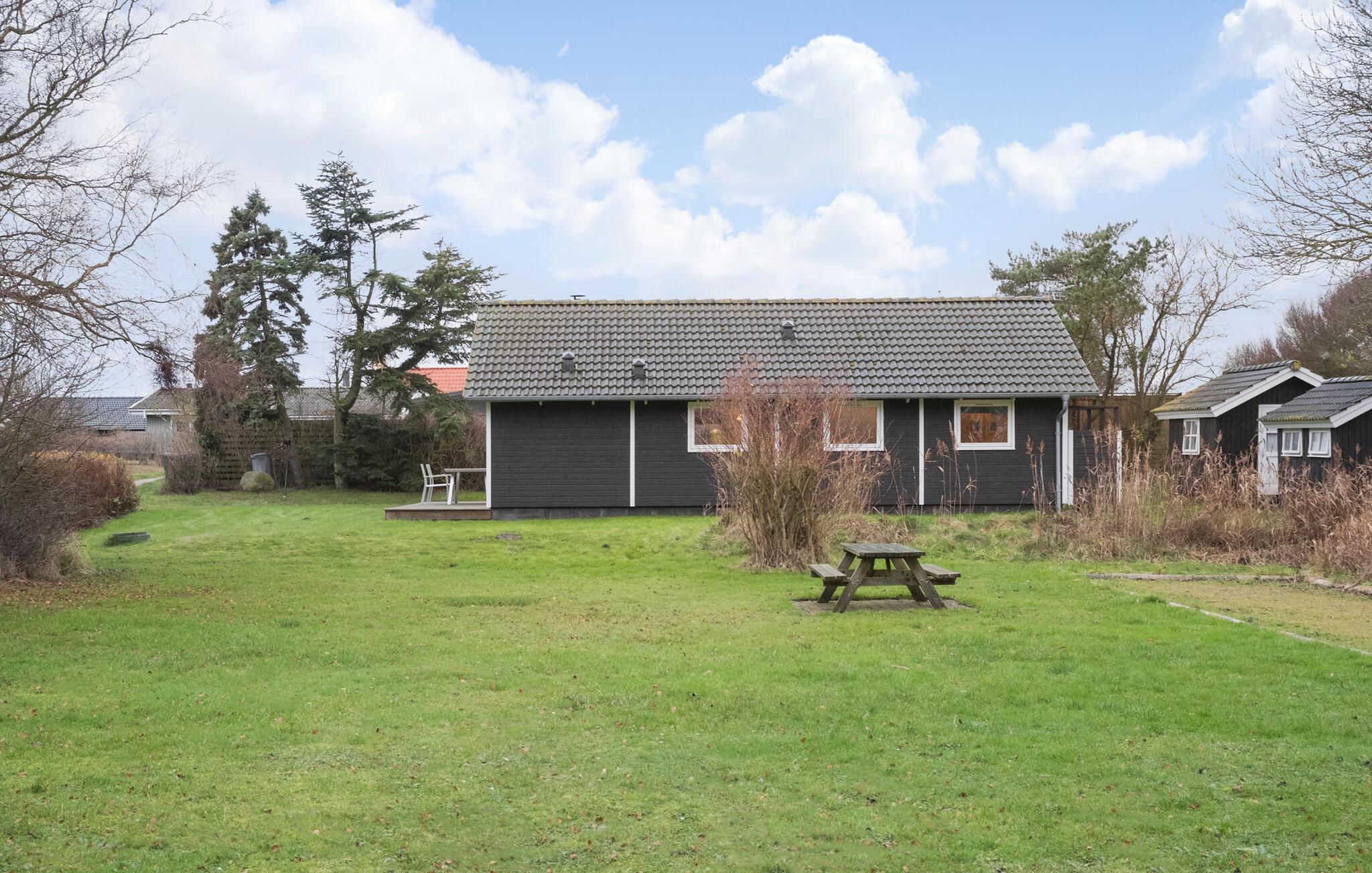 Hyggeligt sommerhus ved Mullerup Strand med terrasse, have og nærhed til stranden og vikingeborgen Trelleborg.