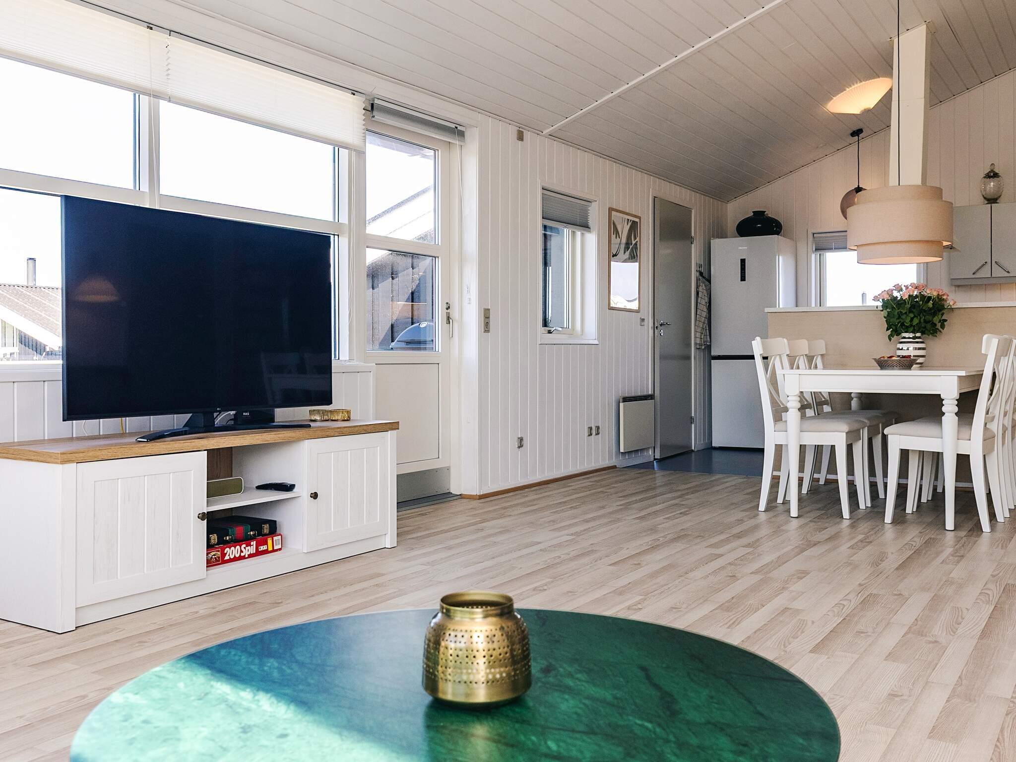 Fra entréen træder I ind i en hyggelig, lys stue med ægte sommerhusstemning, som hænger sammen med køkkenet, hvor der er plads til, at familien kan se en god film på TV eller spille spil ved spisebordet, samt adgang til hems, hvor børnene kan lege. I stuen er der også en brændeovn til de kølige forår- og efterårsdage.
