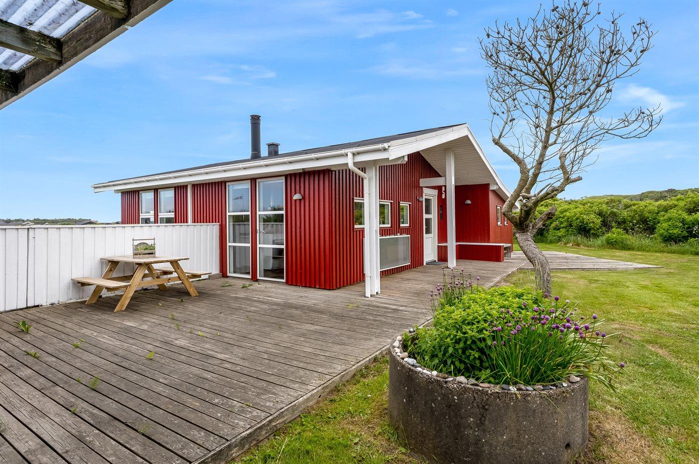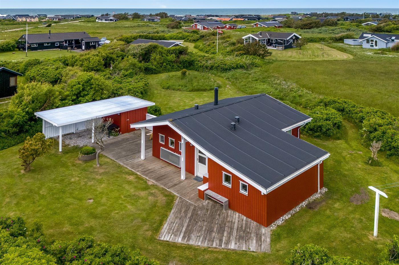 Meget hyggeligt sommerhus beliggende direkte ud til grønne områder og med flot udsigt til indlandsklitterne. Huset ligger nær stranden og Vesterhavet, på en dejlig og delvis lukket grund, for enden af blind vej, og under 1 km fra ferieresort med bl.a. spa og wellness. Området indbyder til vandre-, løbe- og cykelture, da der findes afmærkede ruter i hele området.
