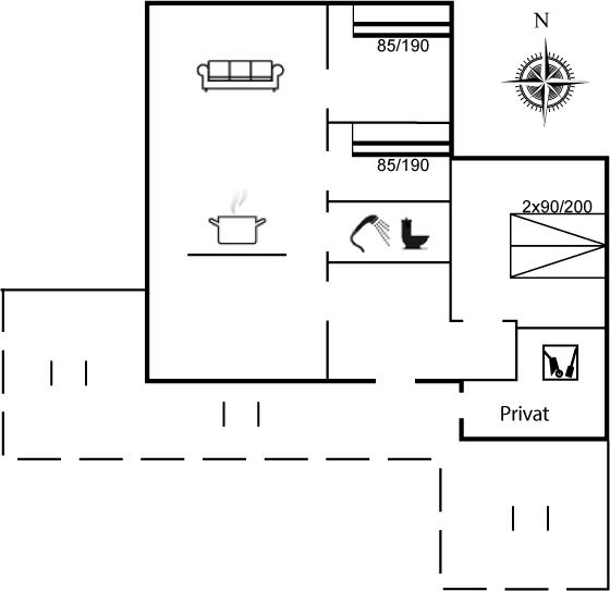 Der er i alt 3 soveværelser. Sovepladserne fordeler sig på: 2 sovepladser i dobbeltseng. 4 sovepladser i køjesenge.