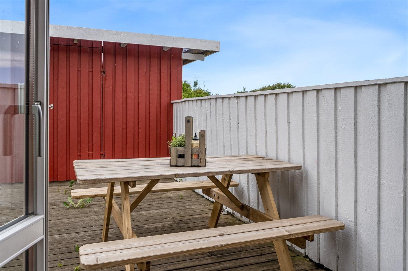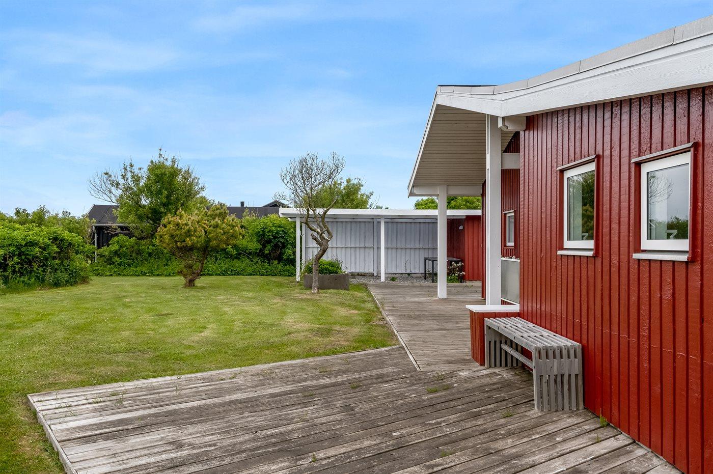 Ferieboligen er beliggende på en 1400 m² stor naturgrund. Der er 400 m til havet. Nærmeste forretning er beliggende i en afstand af 1000 m. Til ferieboligen hører 38 m² terrasseareal. Der er redskabsrum. Der er carport til rådighed. Parkering ved ferieboligen.