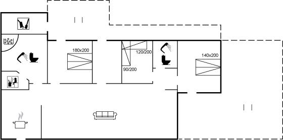 Der er i alt 3 soveværelser. Sovepladserne fordeler sig på: 4 sovepladser i dobbeltsenge. 1 soveplads i enkeltseng.1 soveplads i køjeseng. 2 sovepladser på madrasser. Derudover er der 1 stk. barneseng.