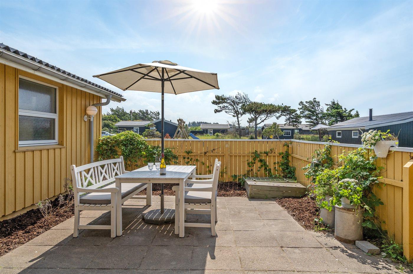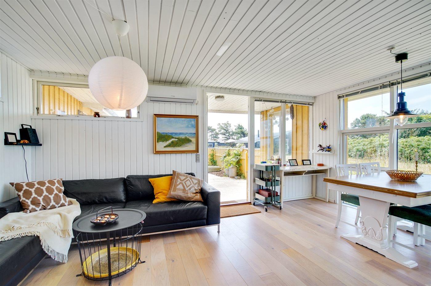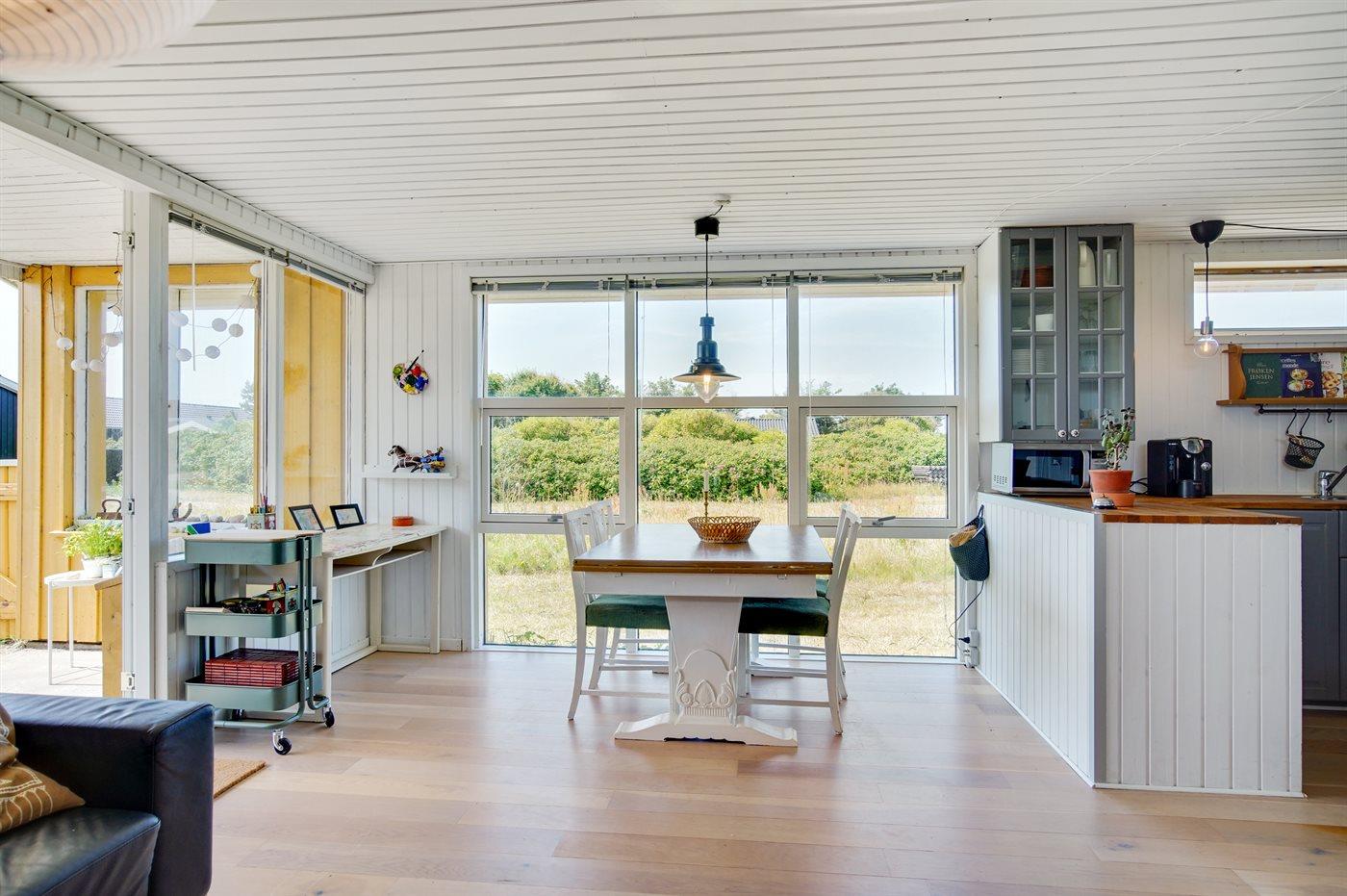 Midt i et fredfyldt sommerhusområde ligger dette charmerende sommerhus i rolige omgivelser. Gennem sommerhusområdet mod syd kan du gå eller cykle til Skallerup Klit Feriecenter, hvor der er aktiviteterfor både børn og voksne.