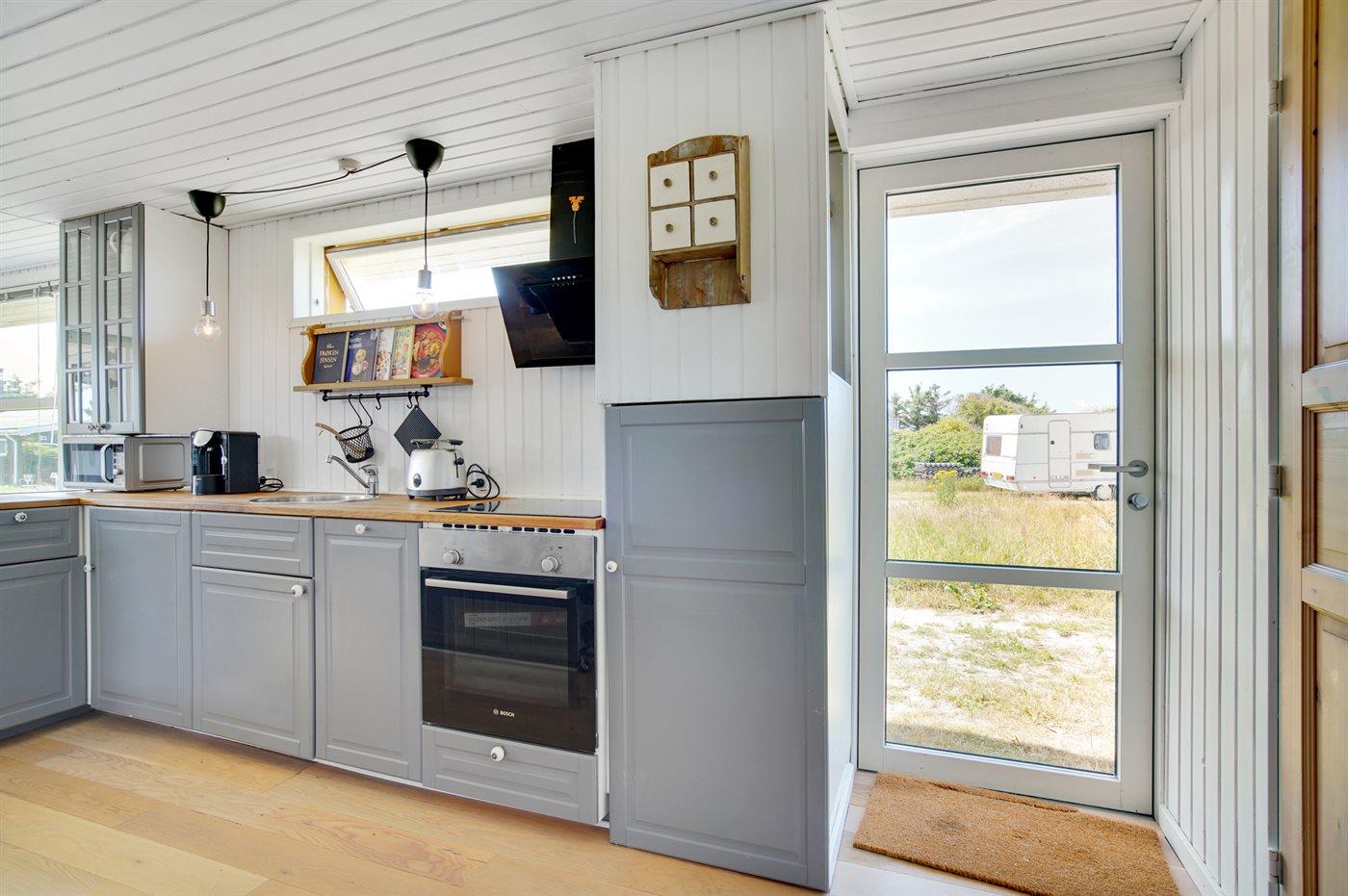 Køkkenet er udstyret med 1 køleskab. Der er 4 induktionskogeplader, varmluftovn, mikrobølgeovn samt opvaskemaskine.