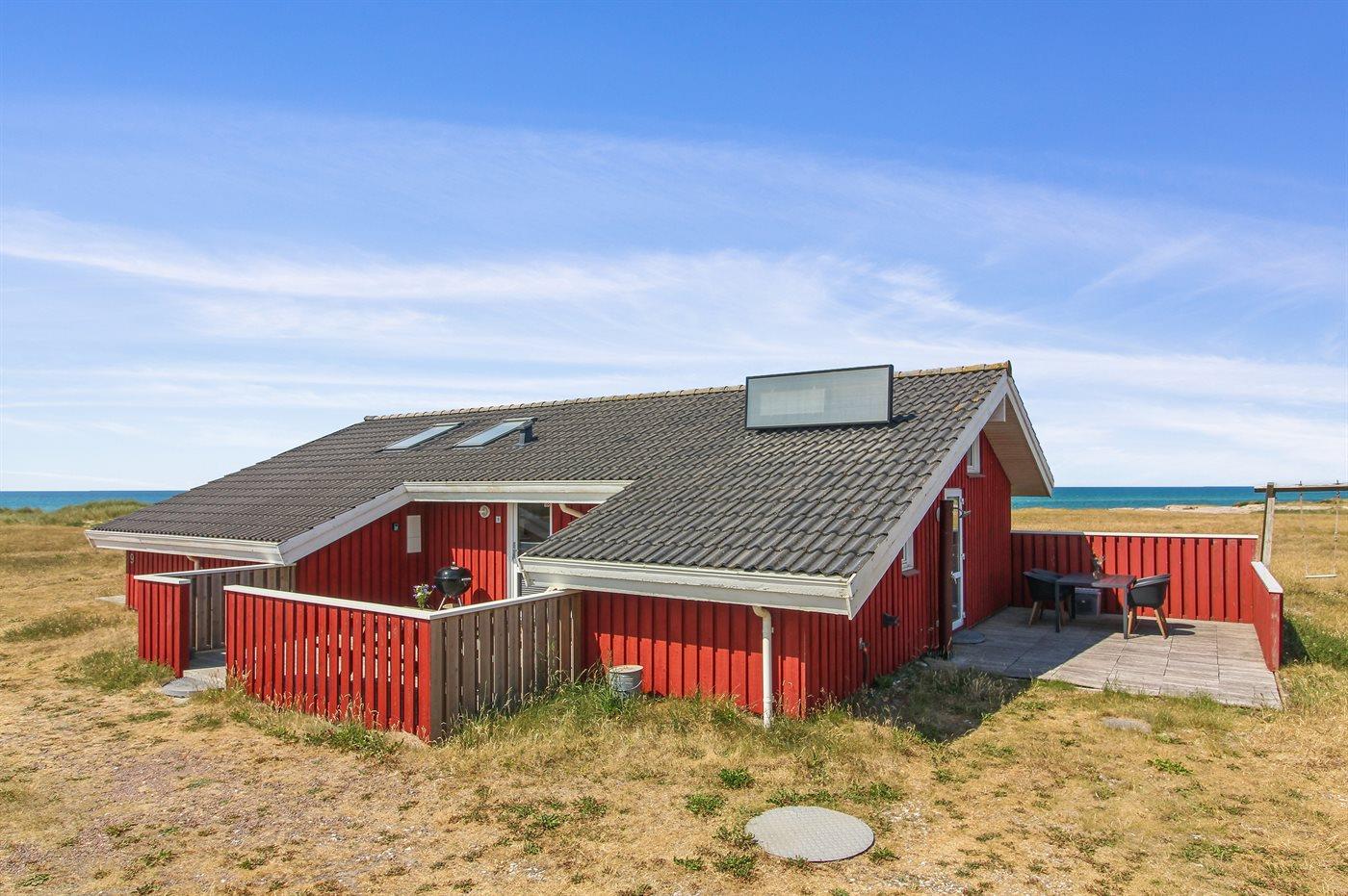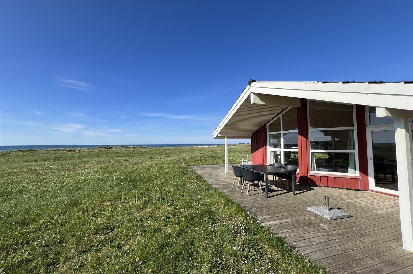 Sommerhus beliggende lige ved stranden og Vesterhavet, på lukket vej, med helt fantastisk panorama havudsigt fra såvel hus som grund.