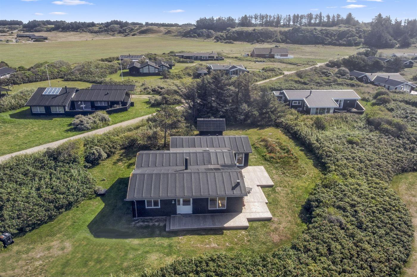 Ferieboligen er beliggende på en 1421 m² stor naturgrund. Der er 300 m til havet. Nærmeste forretning er beliggende i en afstand af 1000 m. Til ferieboligen hører 80 m² terrasseareal. Desuden er der 15 m² overdækket terrasse. Parkering ved ferieboligen.