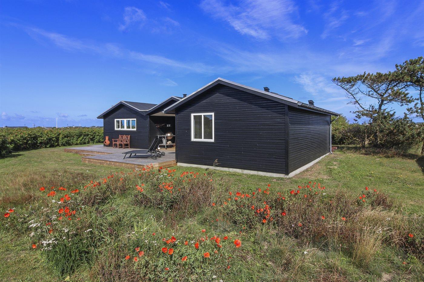 Hyggeligt sommerhus tæt på havet med sauna, dampbad og stor terrasse i naturskønt område ved Hjørring.