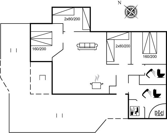 Der er i alt 4 soveværelser. Sovepladserne fordeler sig på: 4 sovepladser i dobbeltsenge. 4 sovepladser i enkeltsenge. Derudover er der 1 stk. barneseng.