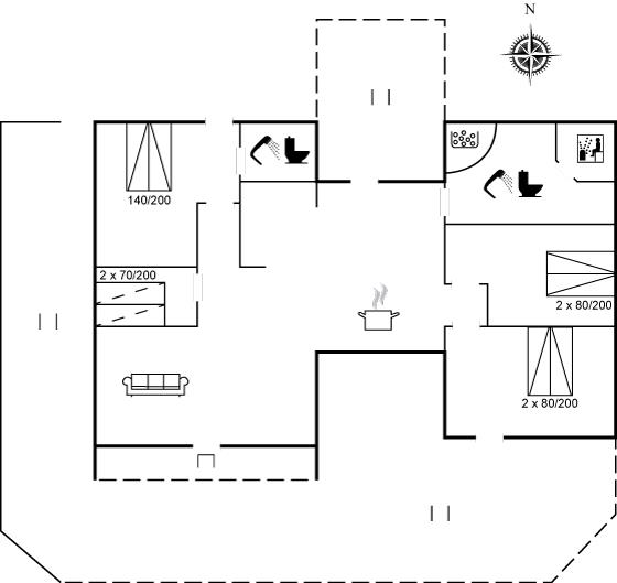 Der er i alt 4 soveværelser. Sovepladserne fordeler sig på: 6 sovepladser i dobbeltsenge. 2 sovepladser i sovesofa (dobbelt). Derudover er der 1 stk. barneseng.