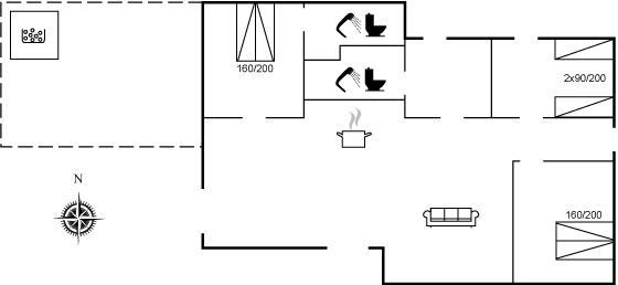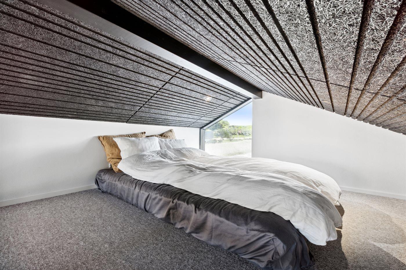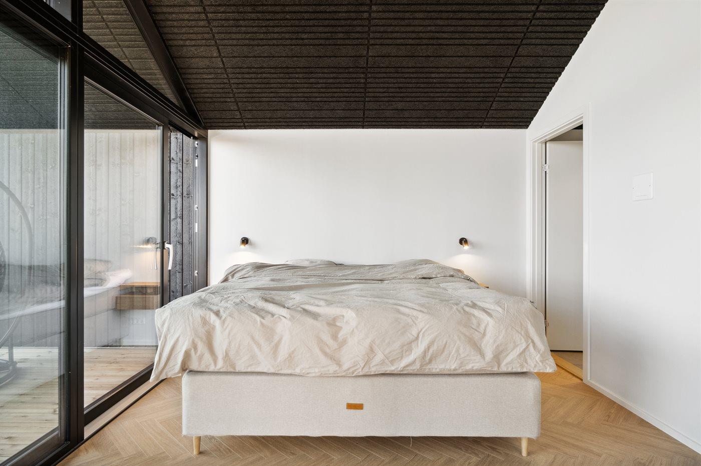 Der er i alt 3 soveværelser. Sovepladserne fordeler sig på: 4 sovepladser i dobbeltsenge. 2 sovepladser i enkeltsenge. 2 sovepladser på madrasser. 2 af disse sovepladser befinder sig på husets hems.