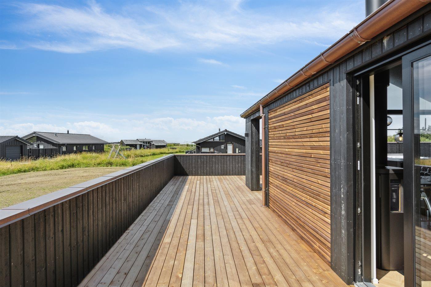 Ferieboligen er beliggende på en 1400 m² stor naturgrund. Der er 800 m til havet. Nærmeste forretning er beliggende i en afstand af 1500 m. Til ferieboligen hører åbent terrasseareal. Der er redskabsrum. Udendørs bruser. Grill til rådighed. Parkering ved ferieboligen.