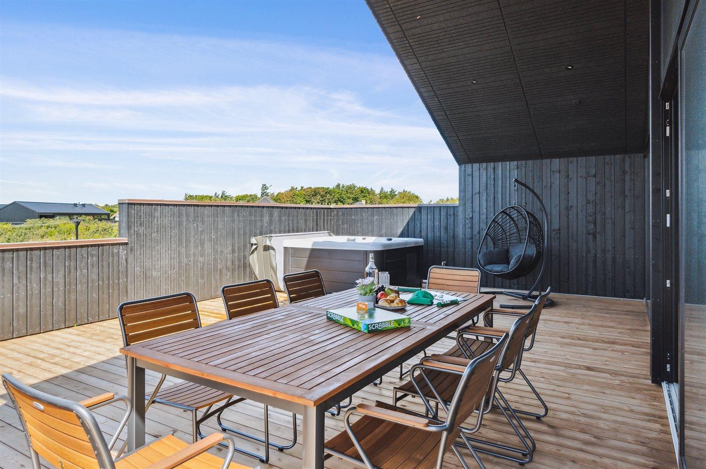 Der er mulighed for afslapning i udendørs standvandsspa til 5 personer.