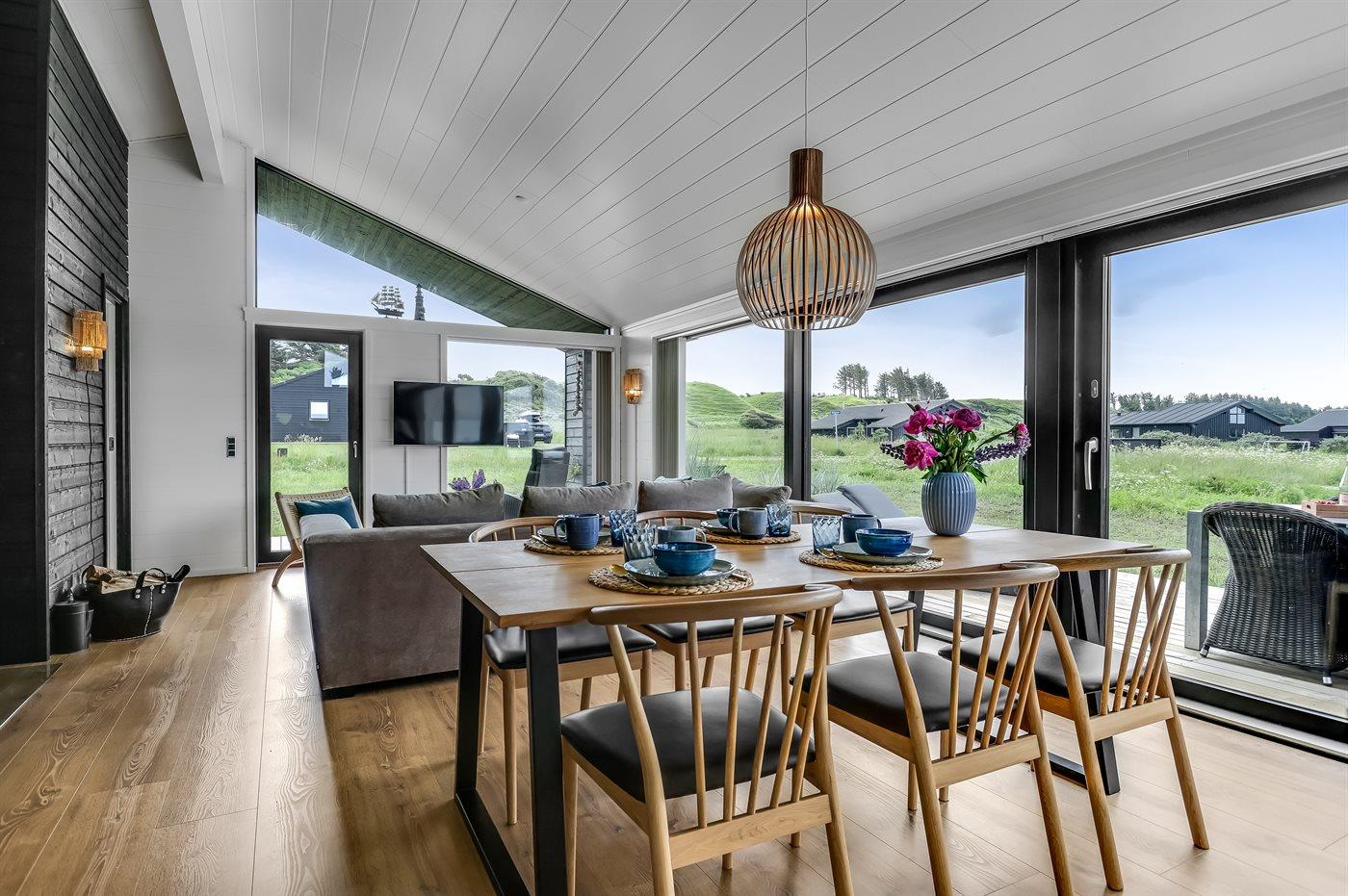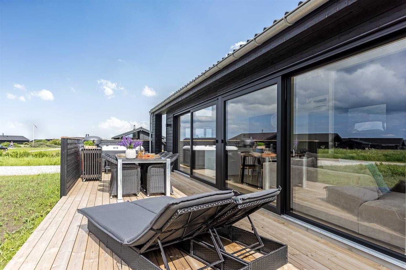 Ferieboligen er beliggende på en 1402 m² stor naturgrund. Der er 400 m til havet. Nærmeste forretning er beliggende i en afstand af 1500 m. Til ferieboligen hører åbent terrasseareal. Desuden er der overdækket terrasse. Grill til rådighed. Der er installeret stik til opladning af elbil. Parkering ved ferieboligen.