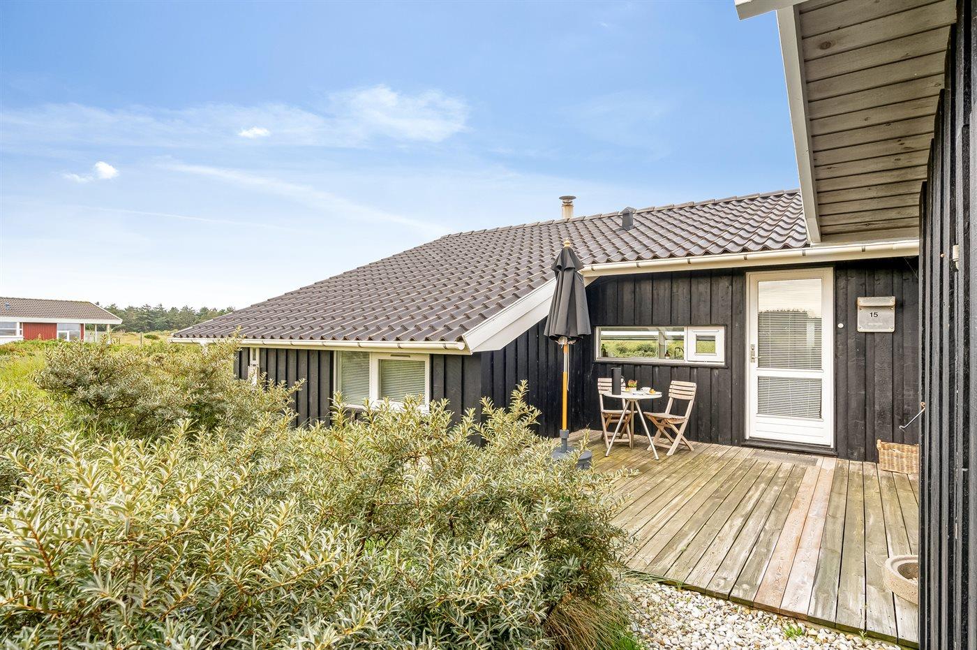 Ferieboligen er beliggende på en 1837 m² stor naturgrund. Der er 400 m til havet. Nærmeste forretning er beliggende i en afstand af 800 m. Til ferieboligen hører åbent terrasseareal. Desuden er der overdækket terrasse. Der er redskabsrum. Grill til rådighed. Parkering ved ferieboligen.
