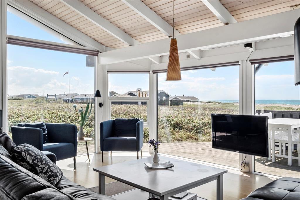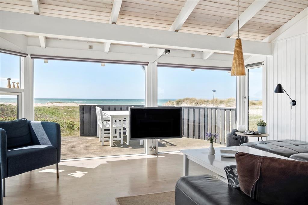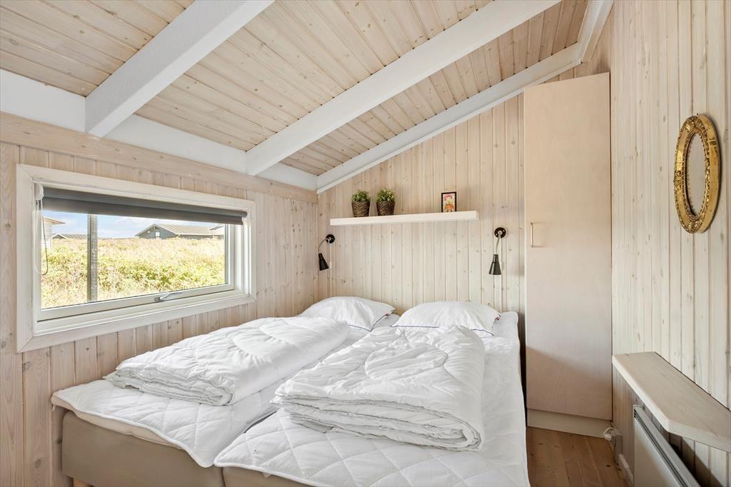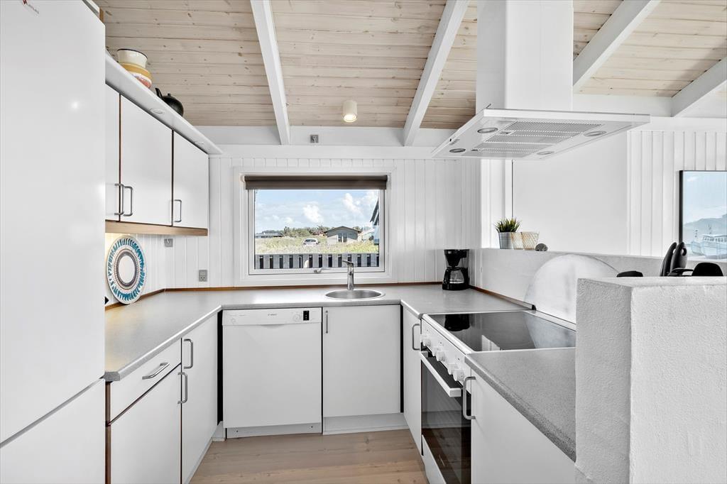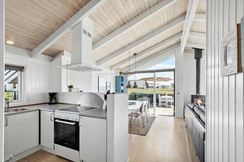 I dette sommerhus mødes man af en moderne og stilsikker indretning med smagfulde møbler og et helt fantastisk lysindfald fra de store vinduespartier; her kan man virkelig få det optimale ud af at bo så tæt på vandet, og er man kreativ anlagt, kan man næsten ikke undgå at få ny inspiration under sit ophold. Sommerhusets køkken ligger i åben forbindelse til stuen, hvorfra man kan nyde den smukke udsigt over Vesterhavet. Især hjørnet med brændeovn og gode stole indbyder til et par hyggelige timer med en god bog eller bare en anledning til at lade tankerne flyve og tømme hovedet for hverdagens mange hektiske planer. Desuden 3 gode soveværelser, to med dobbeltsenge og et med enkeltseng og køjeseng, og et badeværelser med sauna og spa, som bidrager med et strejf af luksus. Endelig skal den dejlige hems med madrasser også nævnes, et godt sted for børnene at lege eller slappe af med de medbragte tablets; sommerhuset har trådløst internet. Gode, hyggelige og funktionelle rammer for en vellykket ferie i det nordjyske!