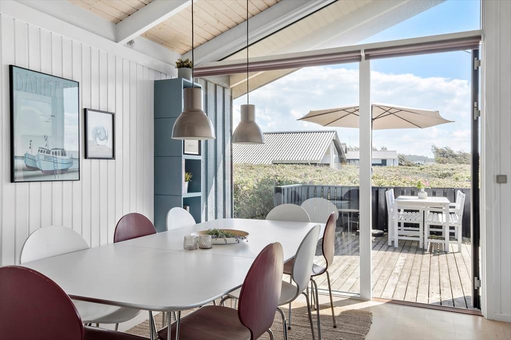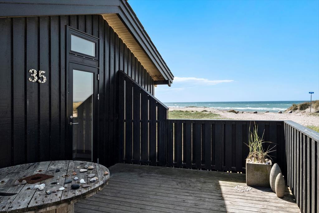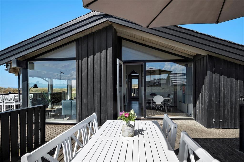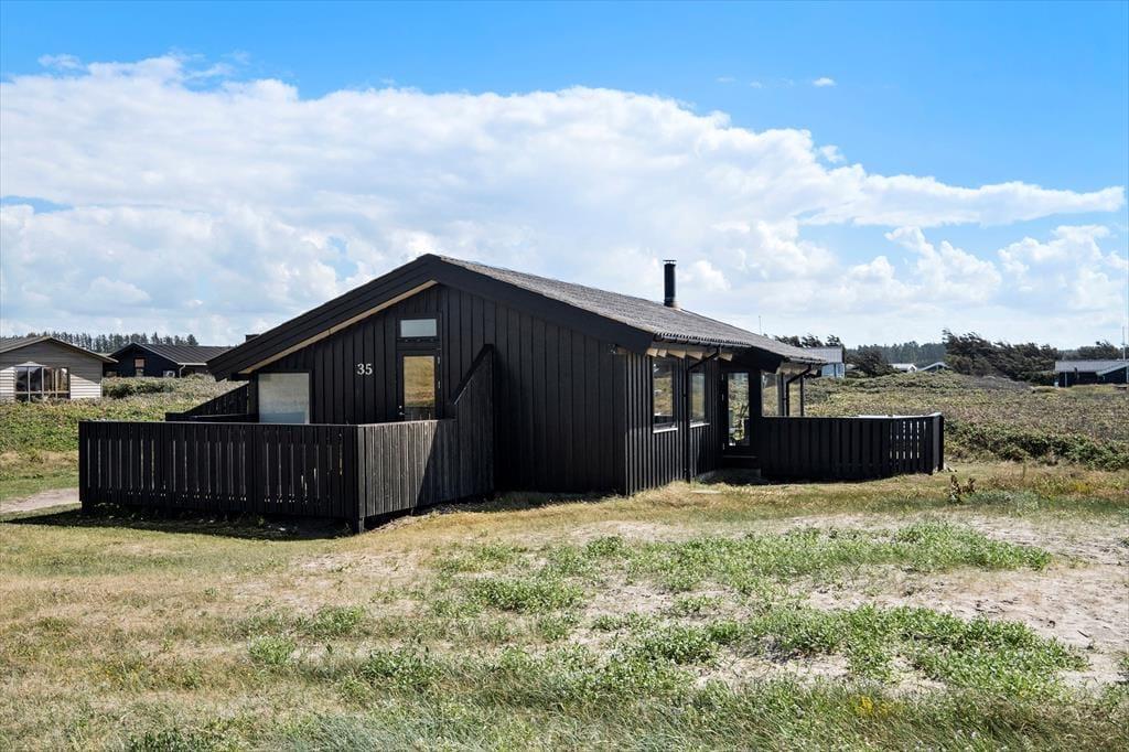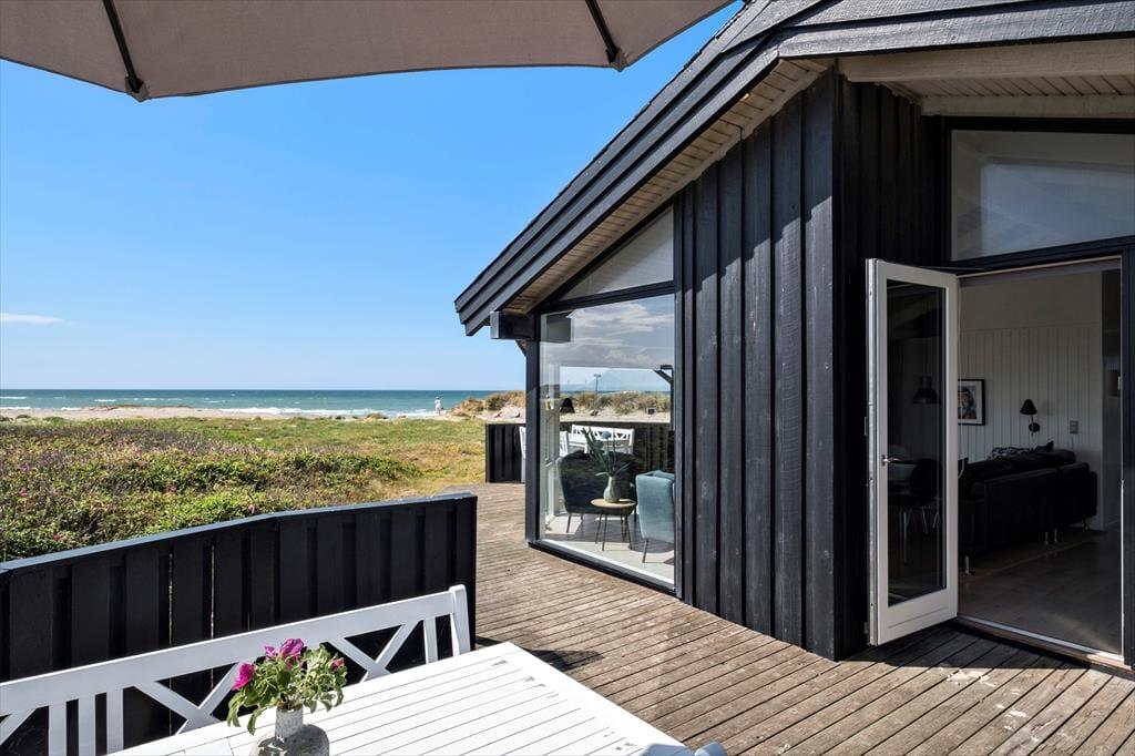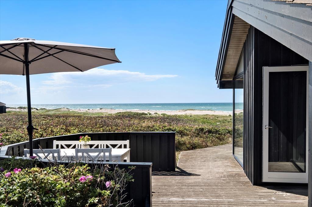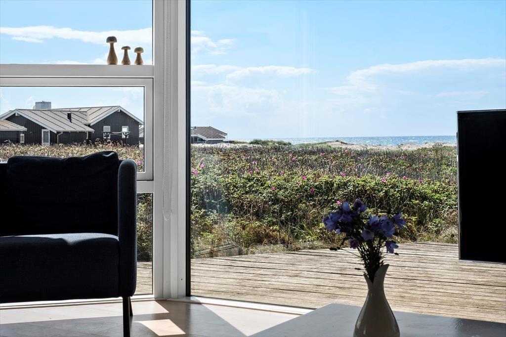 Sommerhuset ligger på en kuperet naturgrund helt tæt på stranden, så man hurtigt kan springe en tur i bølgen blå eller starte dagen med en god, frisk travetur. Overalt fra grunden har man den fantastiske udsigt over Vesterhavet, og der er masser af muligheder for at nyde den danske sommer og solen hele dagen fra en af de flotte terrasser, hvor man også kan finde læ, hvis vinden en dag er lidt for frisk.
