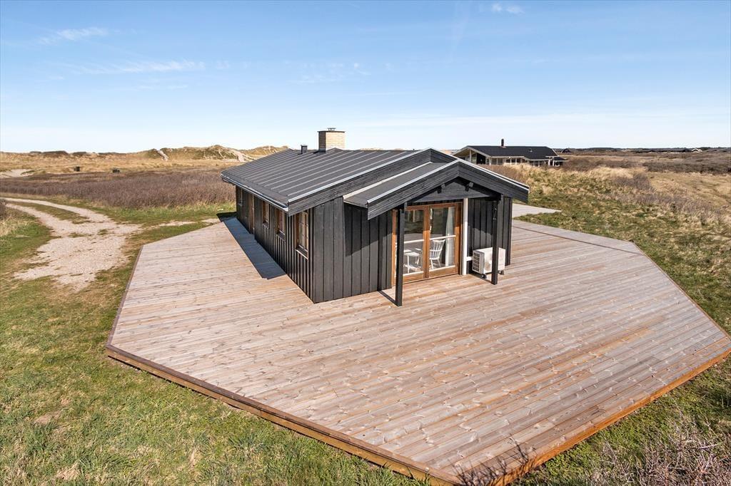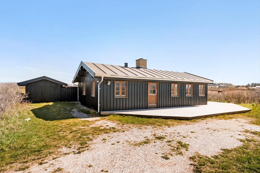 Det er bestemt ingen overdrivelse at skrive, at dette sommerhus har en særdeles naturskøn beliggenhed ved Nørlev Strand: Vesterhavet og den hvide sandstrand venter bare 100 meter væk, og som du kan se på billederne, går der ofte heste på græs i de lave klitter lige syd for sommerhuset. Med andre ord har du en smuk og fredfyldt ramme, når du nyder driverlivet her på Udemarken 24.