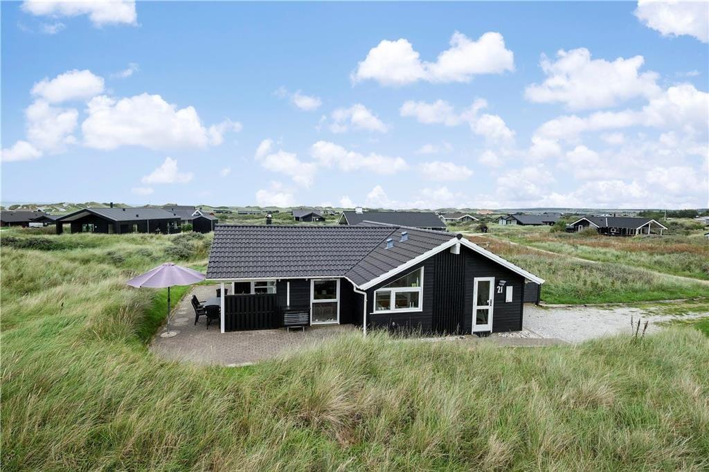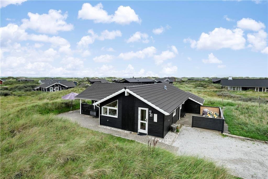Dette flotte hus ligger i Nørlevs allerbedste område, hvor du får hav, klitter, lyng og noget af Danmarks smukkeste natur lige udenfor døren. Sid på den overdækkede terrasse og nyd solen mens du spejder ud over området, hvor du også har kig til Vesterhavet.