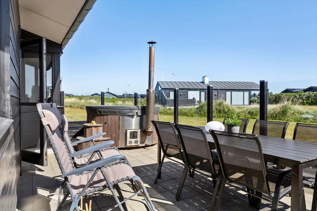 Får I lyst til en frisk dukkert i Vesterhavet, har I blot 150 meter til stranden – så hvis vejret er køligt, kan I hurtigt nå hjem for at varme jer i saunaen. Er temperaturerne sommerlige, kan I blive hængende på den brede strand for at lege i det hvide sand og nyde den afslappede feriestemning.