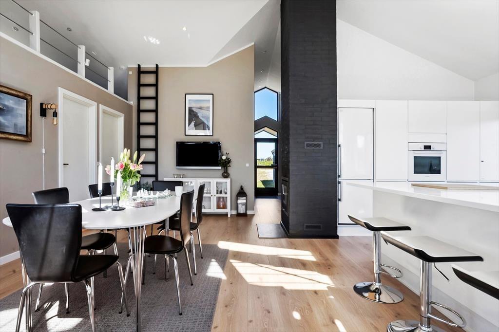 Huset skiller sig ud fra mængden med sin elegante arkitektur og særdeles smagfulde indretning. Komforten er der også tænkt på: Eksempelvis kan I slænge jer på behagelige dobbeltsenge på alle tre soveværelser, og rundt omkring i huset venter flere gode hyggekroge, når I vil slappe af inden døre.