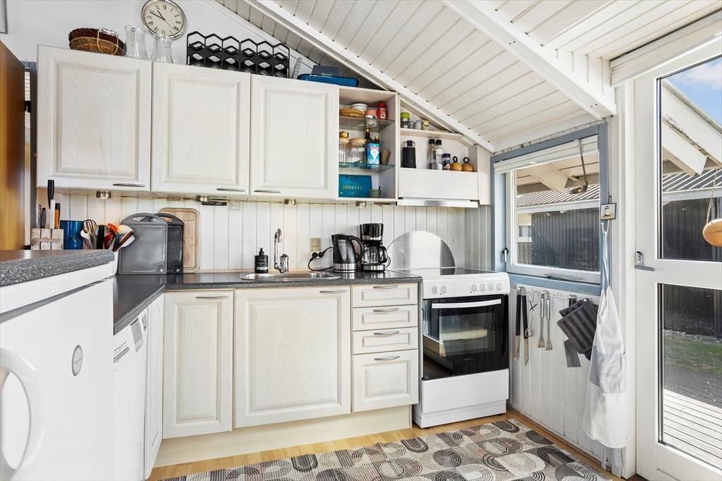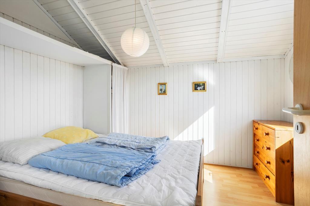 Hvis I leder efter et sommerhus med sjæl og charme, kigger I på det helt rette eksemplar. Med loft til kip, brændeovn og hvidmalede trælister på væggene er stemningen helt i top inden døre. Vinduerne åbenbarer den fine havudsigt, og interiørets maritime farvesammensætning i hvid og blå fungerer som en påmindelse om, hvor tæt I befinder jer på Vesterhavet. Brætspil, måltider og læsestunder kan oplagt finde sted i opholdsrummet: Foruden en køkkenafdeling er rummet indrettet med spisebord, bløde siddemøbler og en sofaniche, så I kan finde jer en hyggelig siddeplads uanset anledningen. Huset byder på to soveværelser med henholdsvis en dobbeltseng og en sovesofa, og så er det derudover muligt at rede op i annekset.