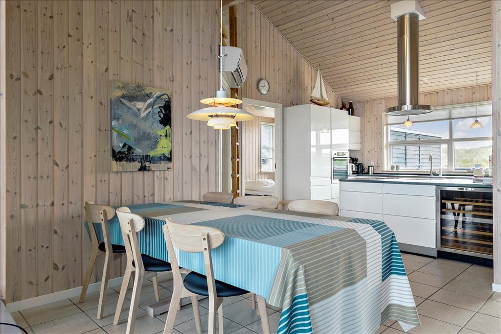 Sommerhus i Nørlev Strand, Nordjylland, med plads til 9 voksne og 2 husdyr. Der er en hyggelig indretning med bl.a. brændeovn, og du finder desuden vaskemaskine, opvaskemaskine og tørretumbler i boligen.