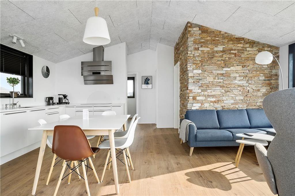 Når I holder ferie i et sommerhus fra 2019, kan I regne med, at alt bare spiller. Huset og det matchende anneks har en elegant og stilfuld arkitektur, og inden døre i de velindrettede rum er atmosfæren lys og luftig. Det gælder ikke mindst for opholdsrummet, der får lysindfald fra tre verdenshjørner – heriblandt gennem to kæmpestore vinduespartier, der vender ud mod vandet. Med andre ord kan I nyde den formidable havudsigt, uanset om I forbereder aftensmaden i det åbne køkken, sidder samlet omkring spisebordet eller slænger jer i sofaafdelingen. Planløsningen byder desuden på to rummelige soveværelser og et lækkert badeværelse.