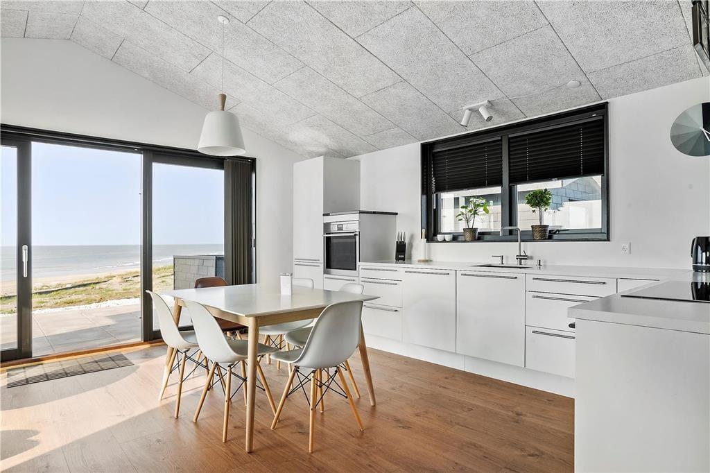 Udsigten imponerer her fra første klitrække, hvor dette moderne sommerhus er placeret. Her på Morgenvej bor I lige ud til Nørlev Strand, og fra både stuen og terrassen kan I skue langt ud over den smukke kyststrækning og det mægtige Vesterhav.